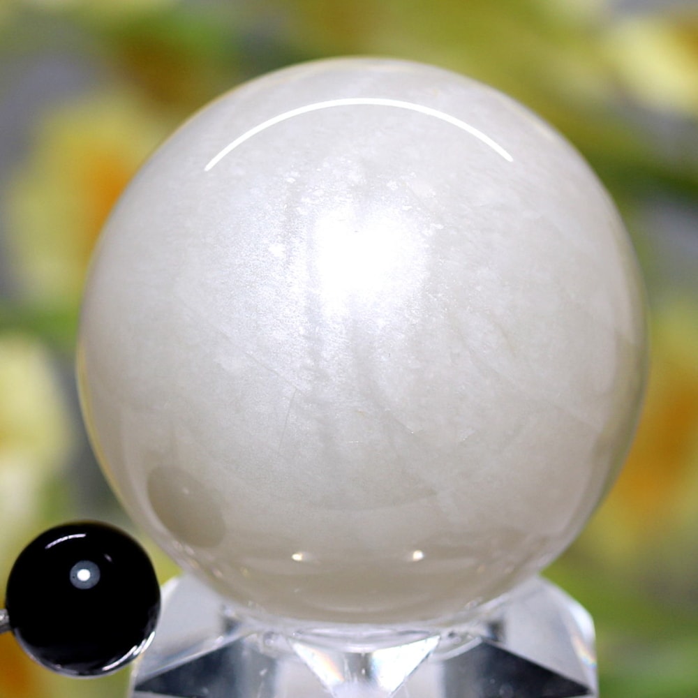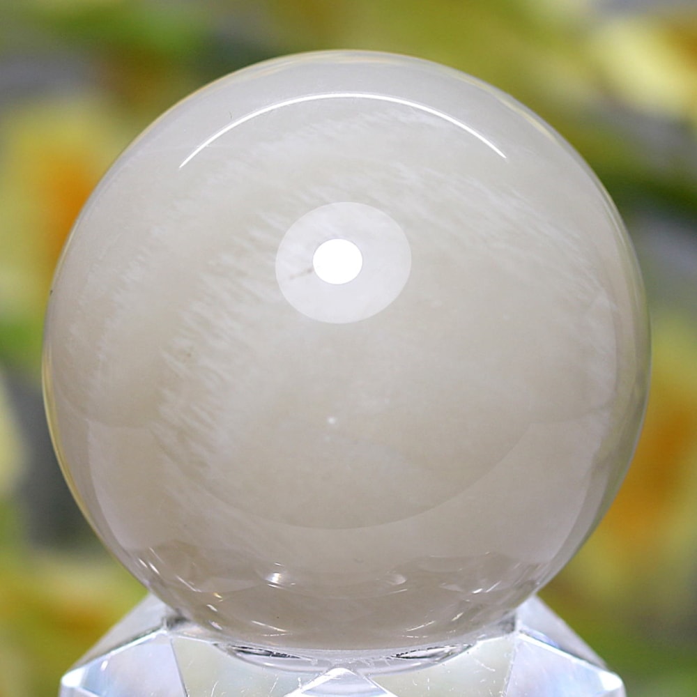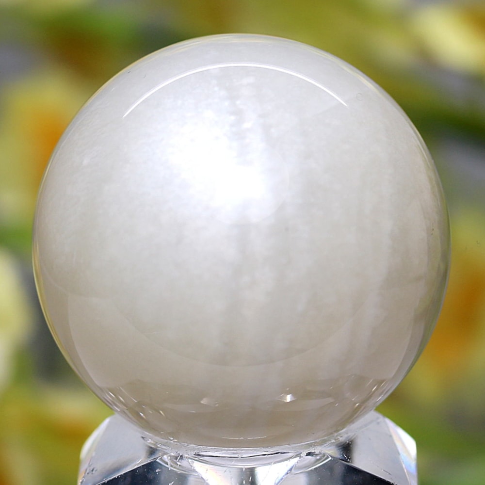 [高品質]ホワイトムーンストーン丸玉/スフィア(直径38.7mm)¥3,800クイックガイド送料