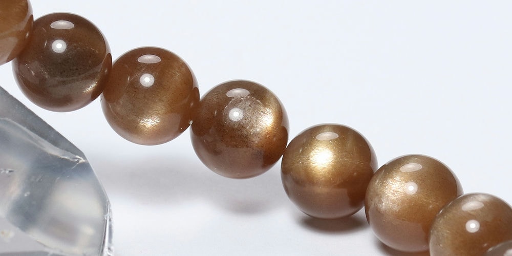 記念特価★[高品質++]タンザニア産ゴールデンサンムーンストーンブレスレット(約9.5mm玉)