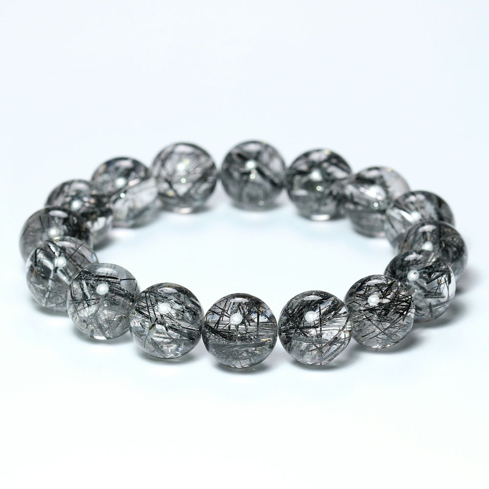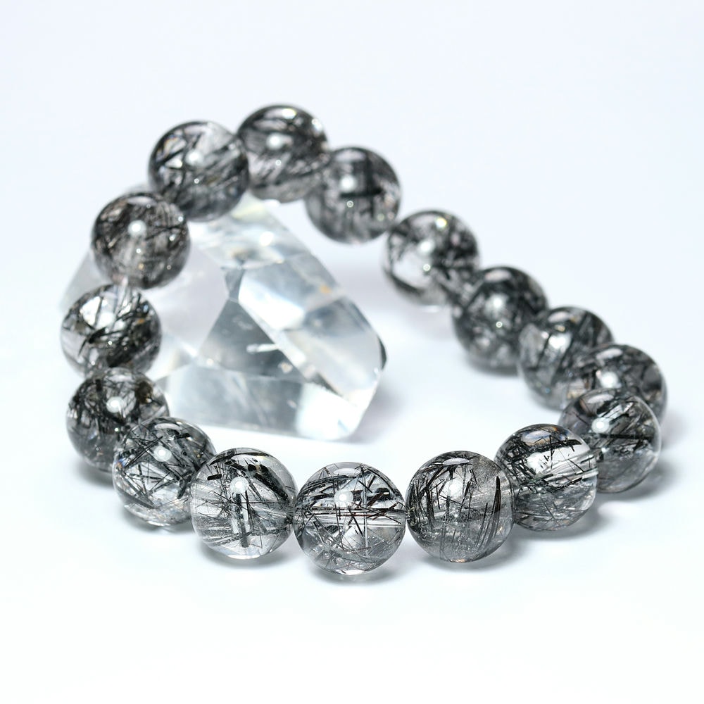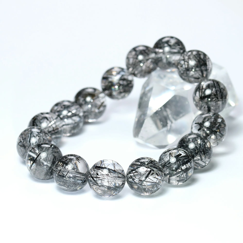 記念特価★[高品質]ブラジル産ブラックトルマリンクォーツブレスレット(約13.5mm玉・市場価格は超高騰!)