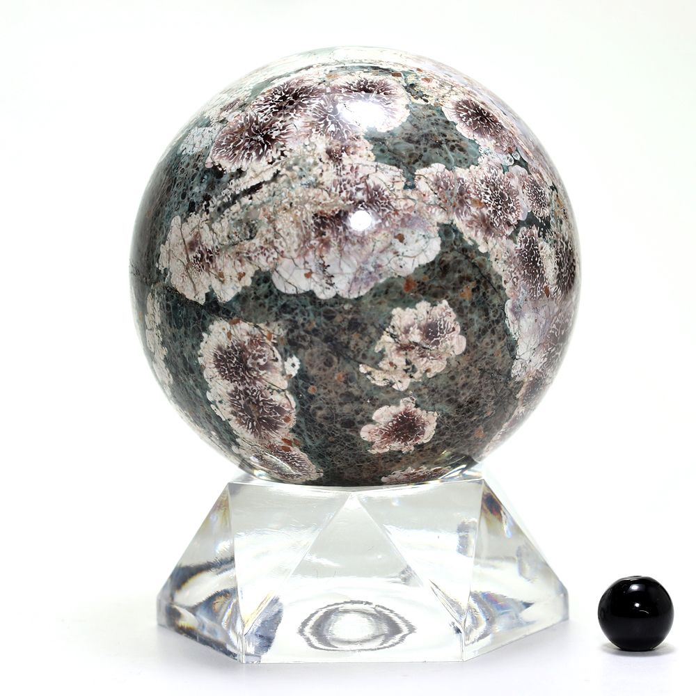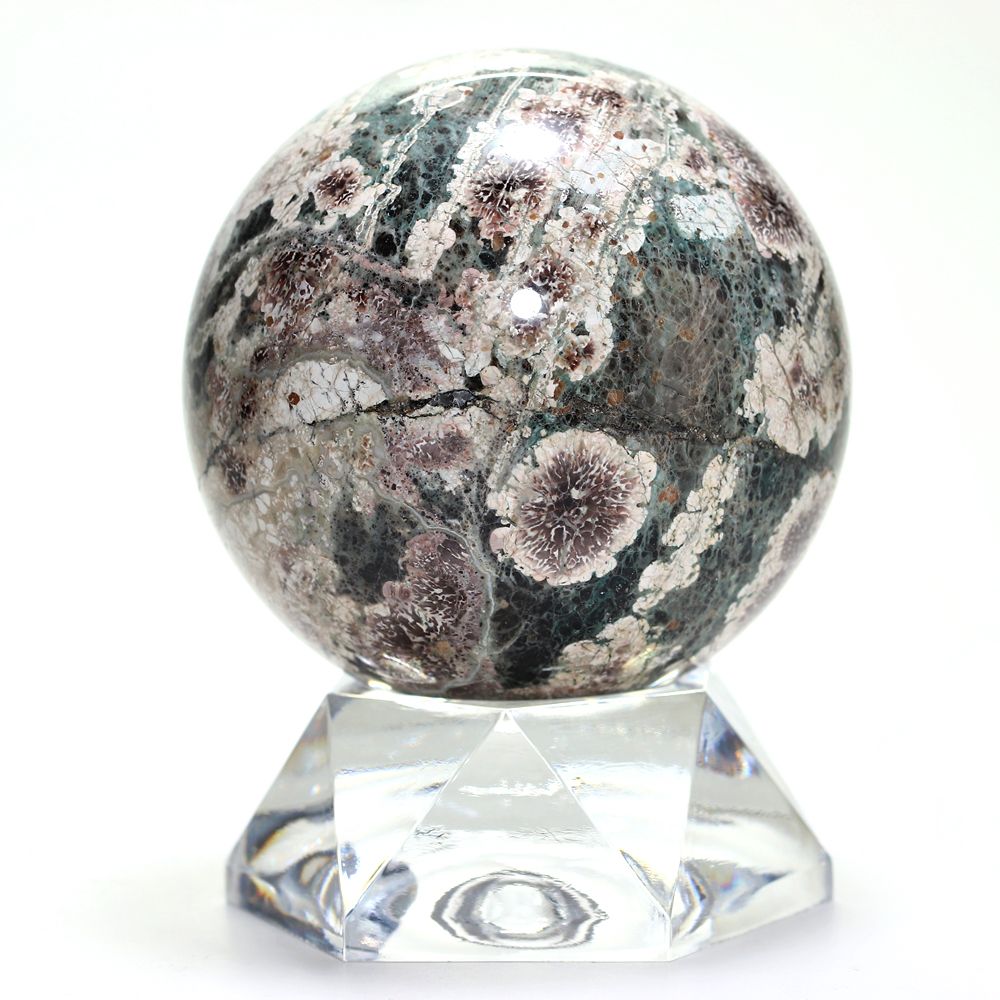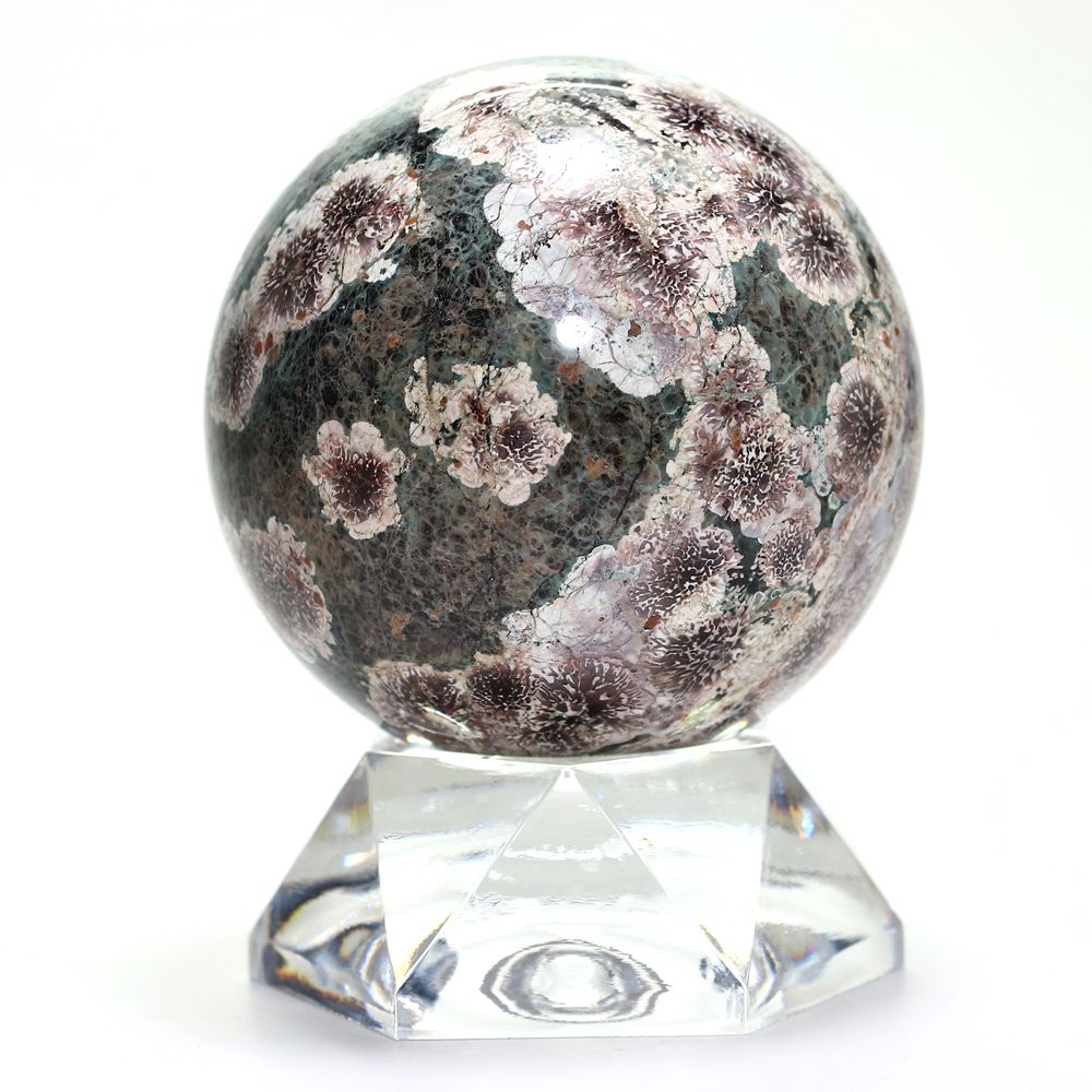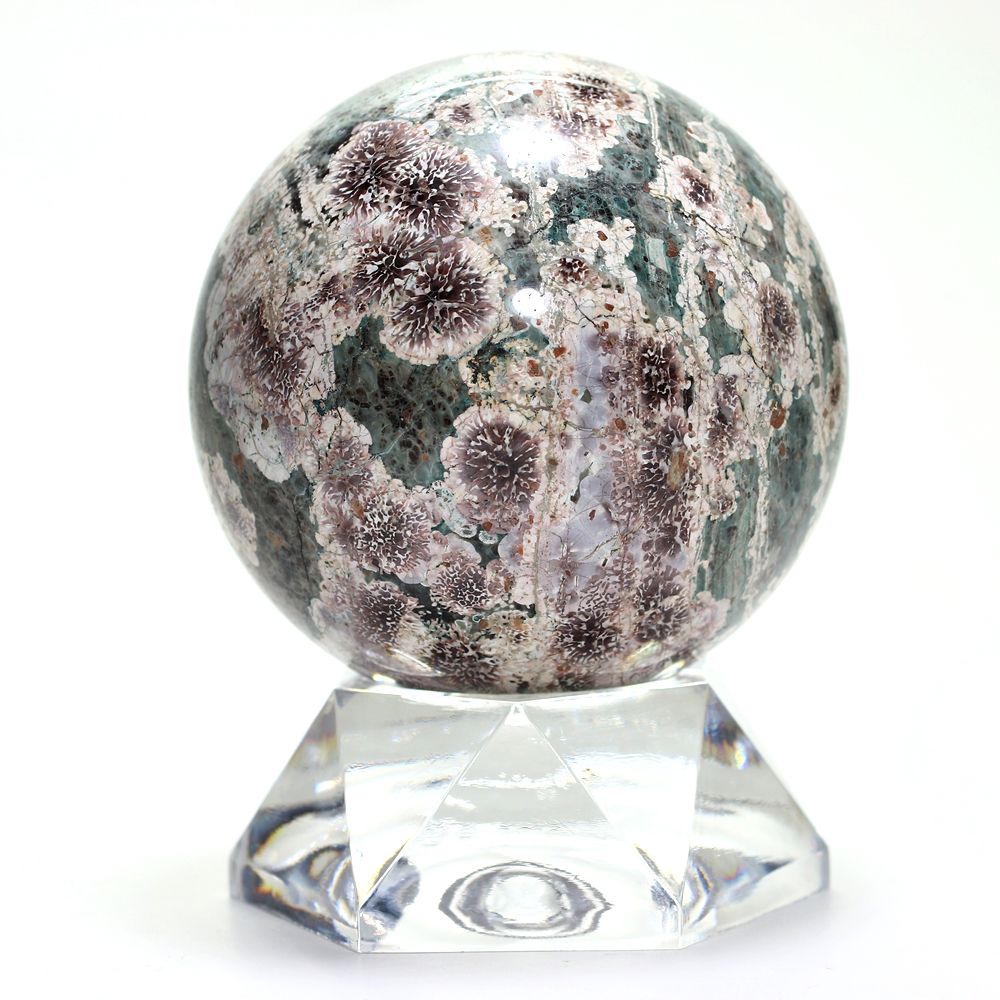 記念特価★マダガスカル産フラワーグリーンジャスパー丸玉/碧玉スフィア(直径63.4mm)