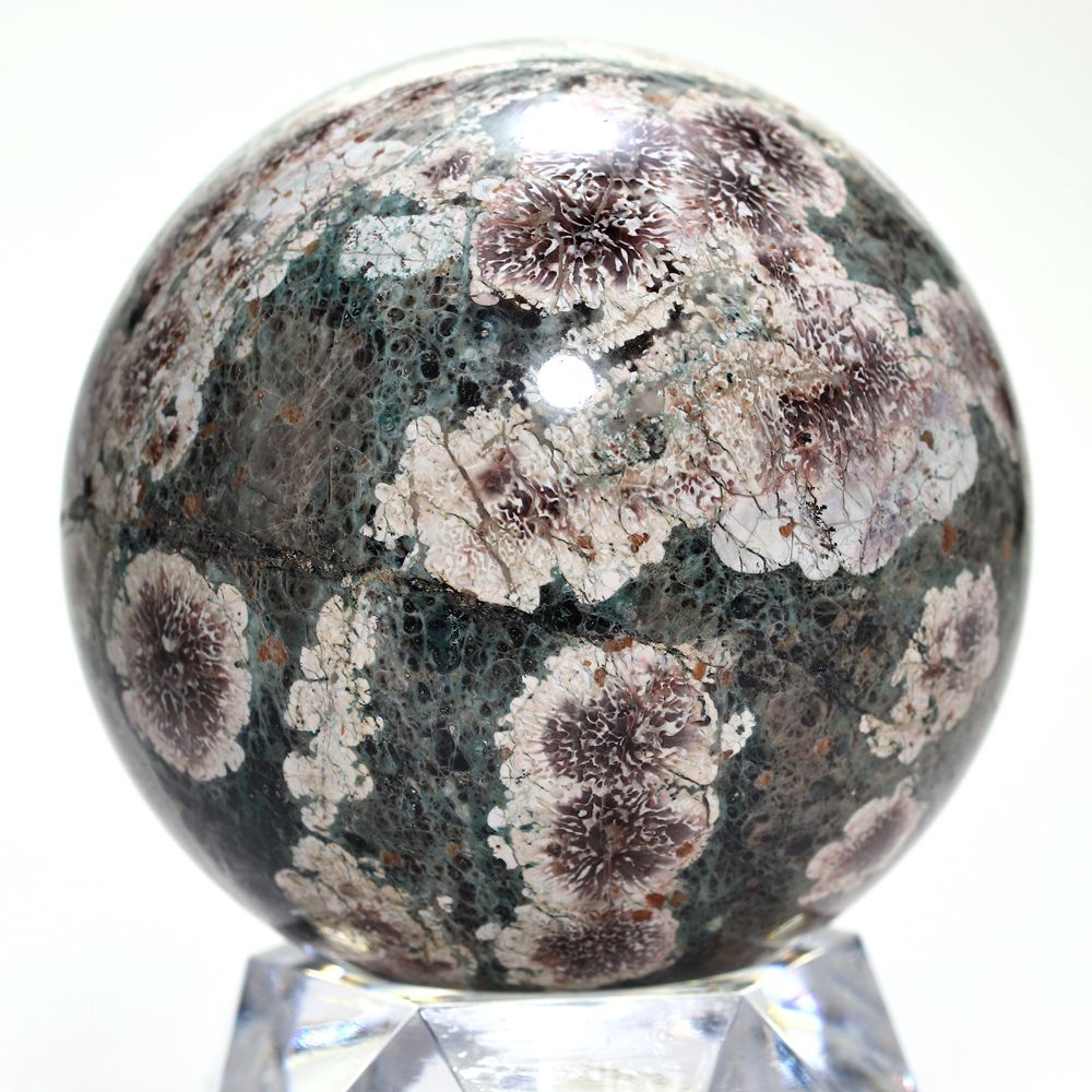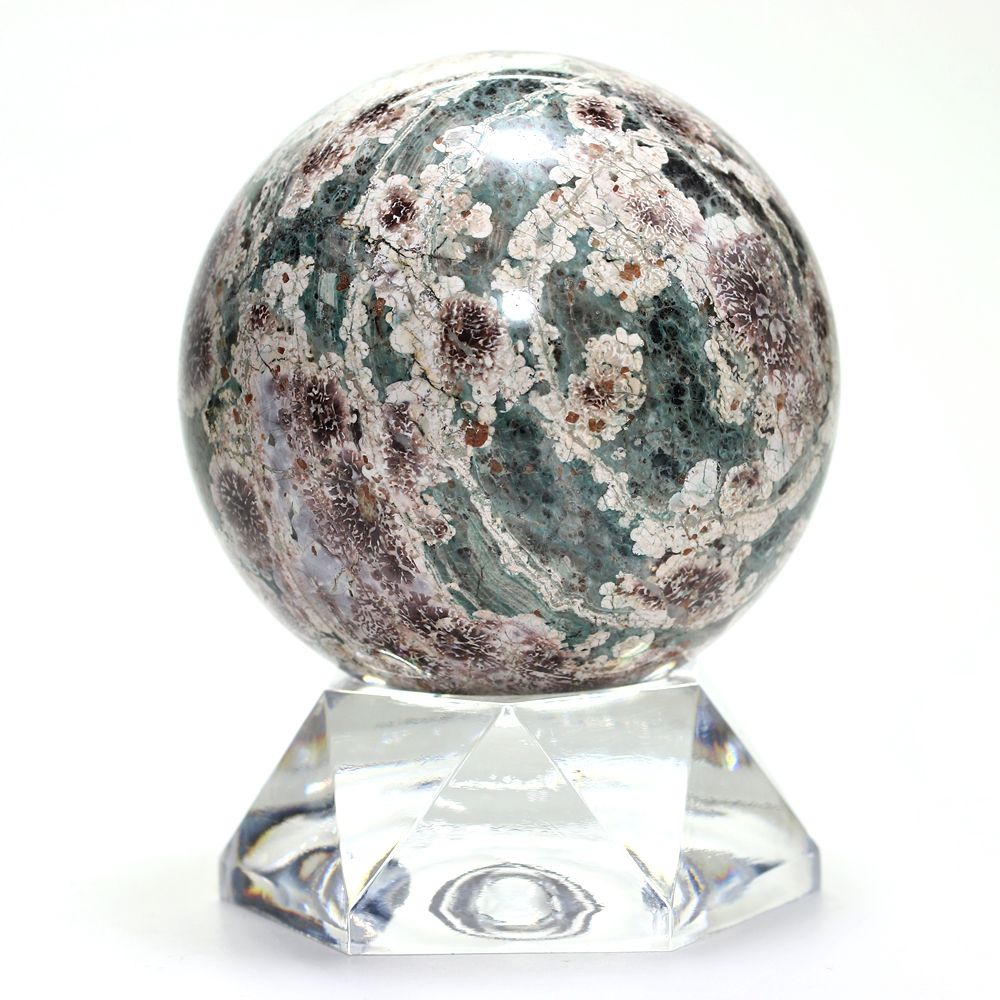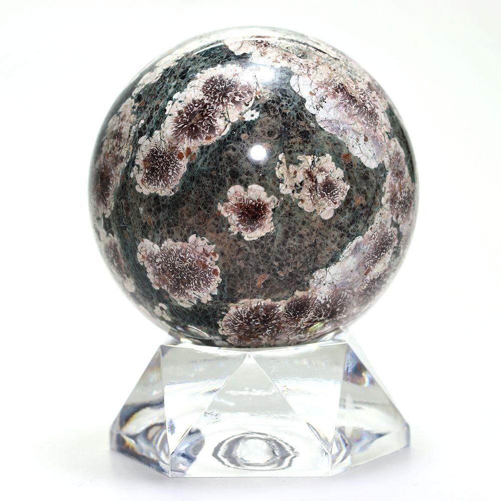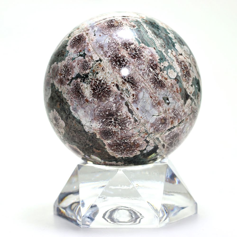 記念特価★マダガスカル産フラワーグリーンジャスパー丸玉/碧玉スフィア(直径63.4mm)