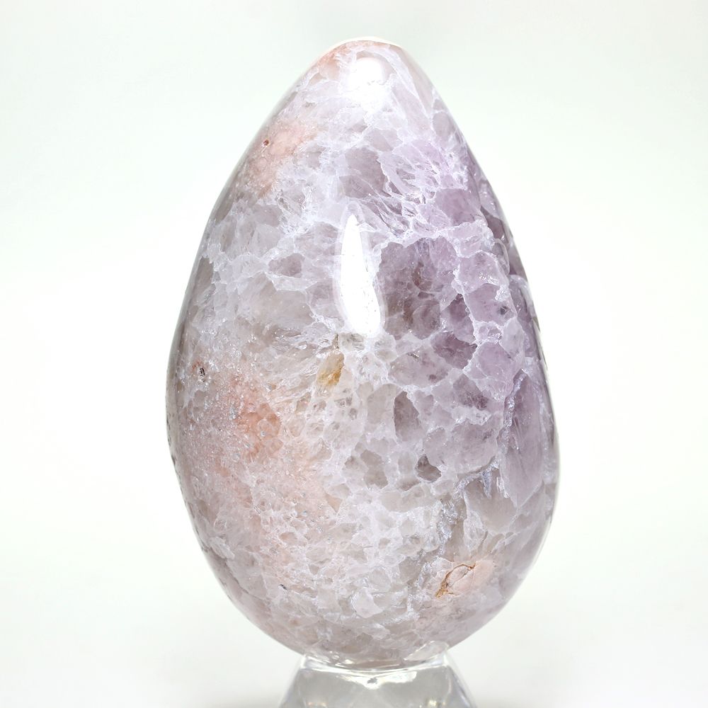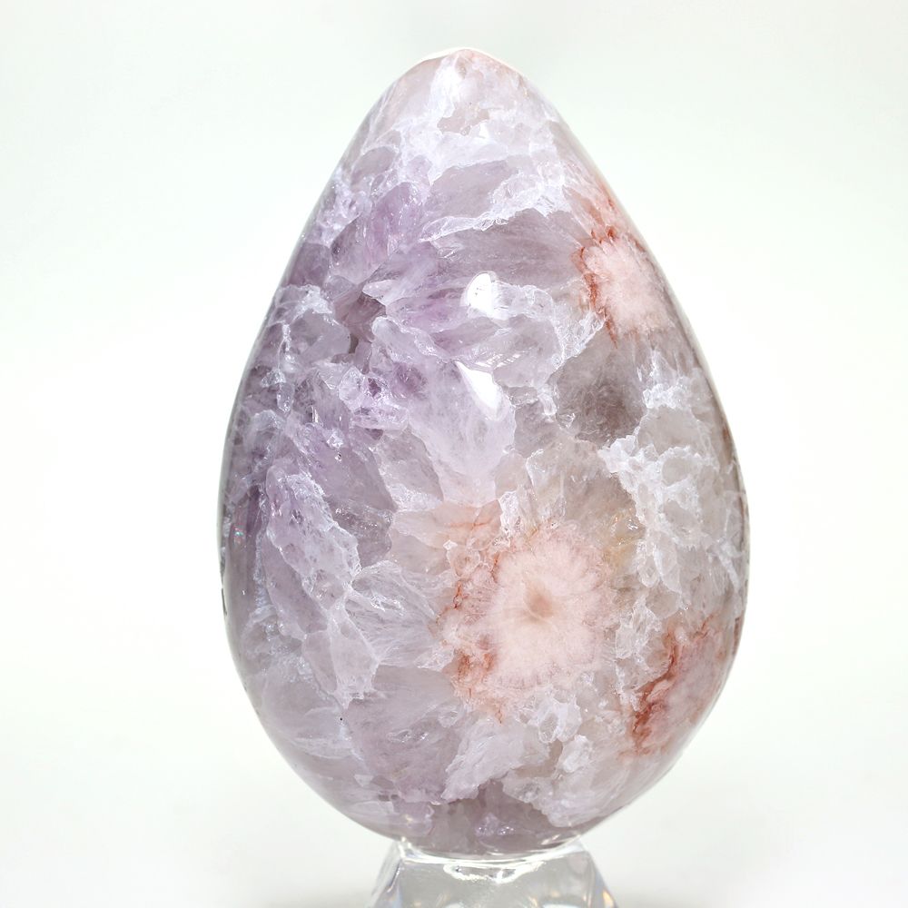 記念特価★マダガスカル産フラワーアゲートアメジストクォーツエッグシェイプ/スフィア(高さ90.4mm)