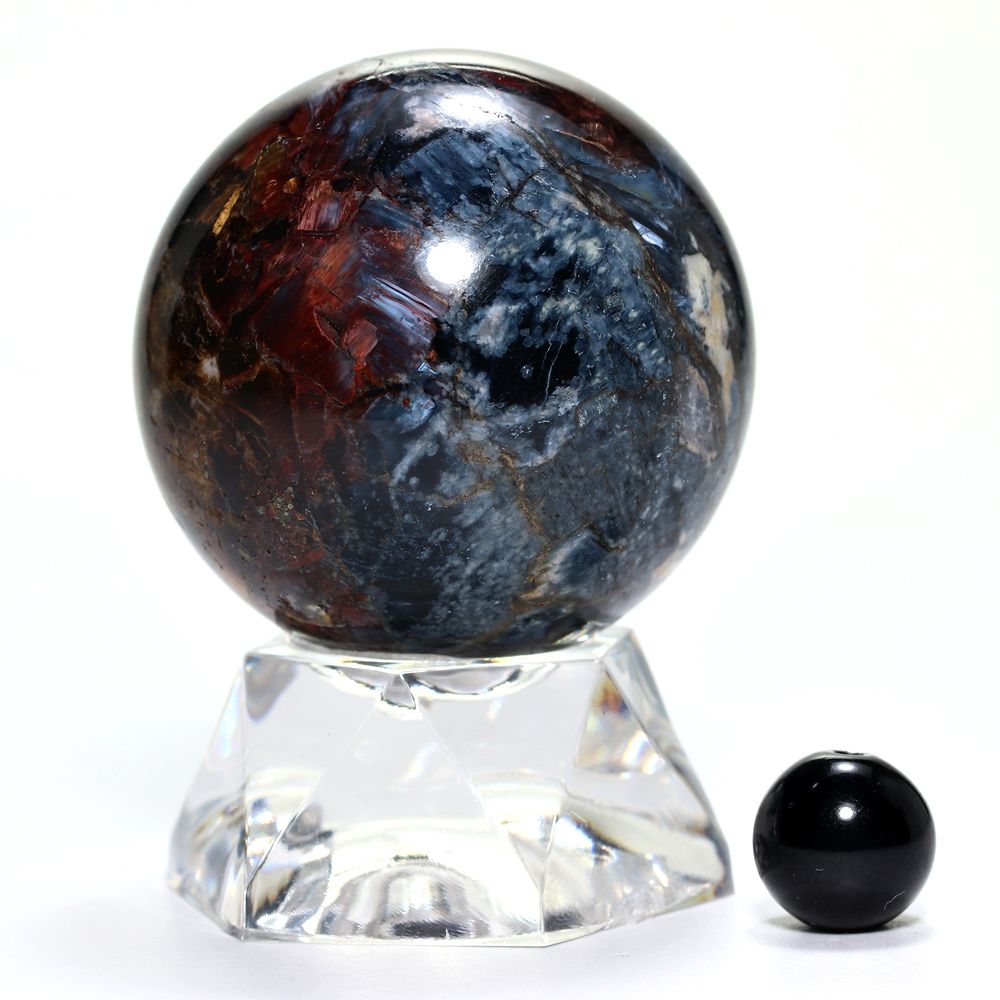記念特価★ナミビア産トリカラーピーターサイト丸玉/スフィア(直径36.0mm・ブルー&レッド&ゴールド)