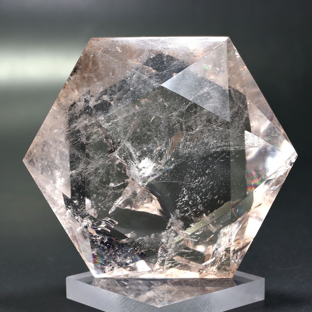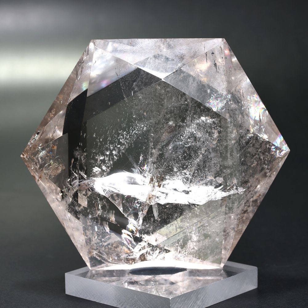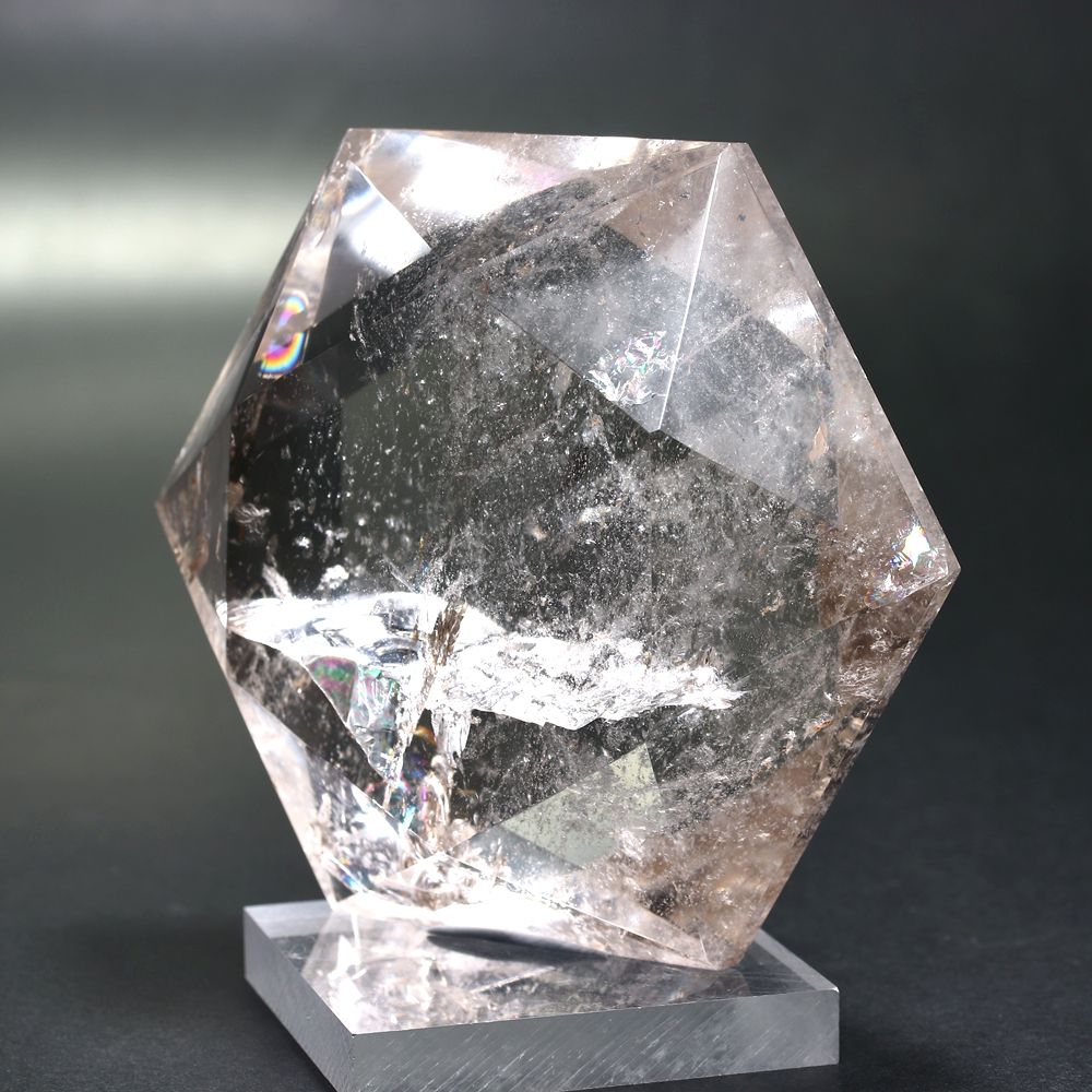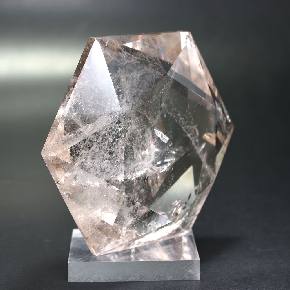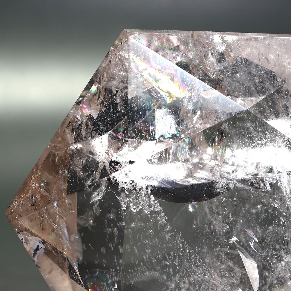 記念特価★ブラジル産ライトスモーキーレインボー水晶ヘキサゴンカット(ビッグサイズオブジェ)
