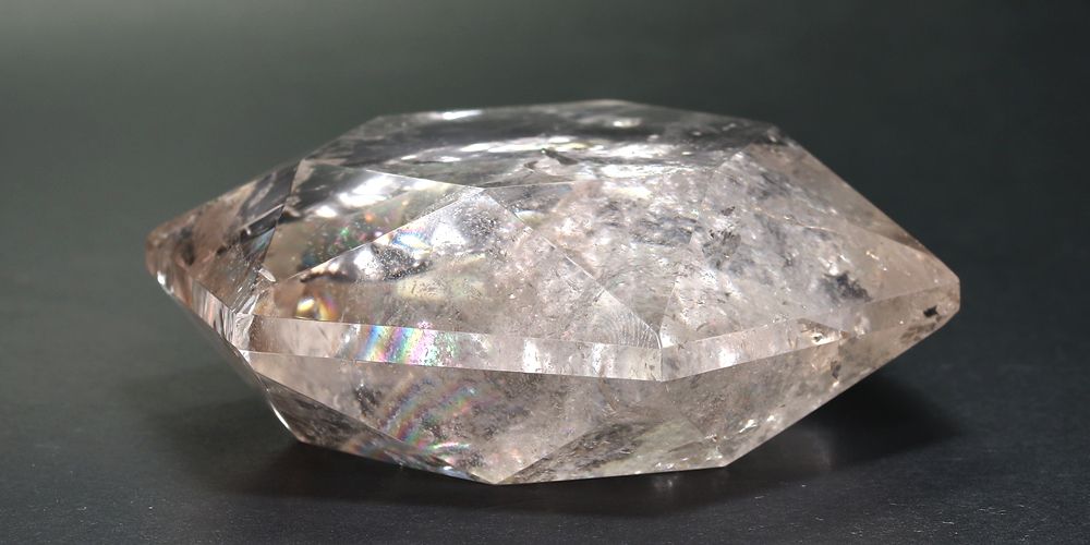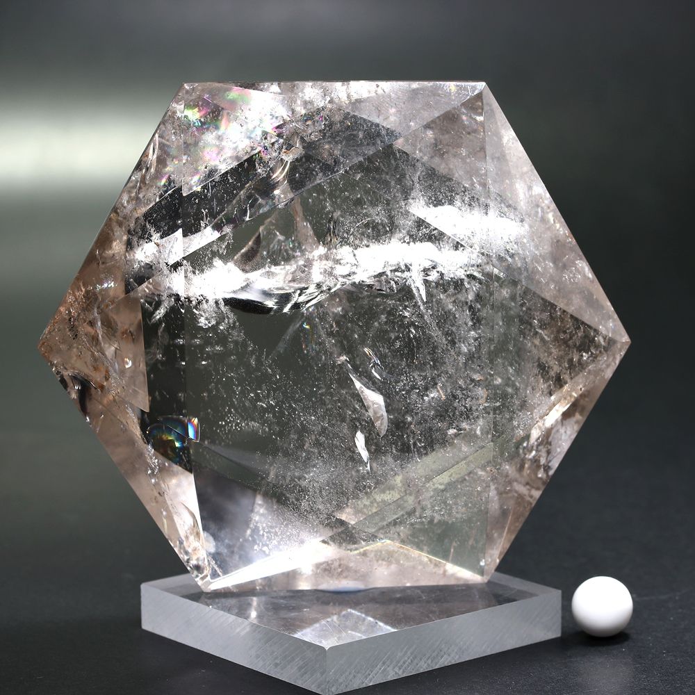 記念特価★ブラジル産ライトスモーキーレインボー水晶ヘキサゴンカット(ビッグサイズオブジェ)¥10,000クイックガイド送料