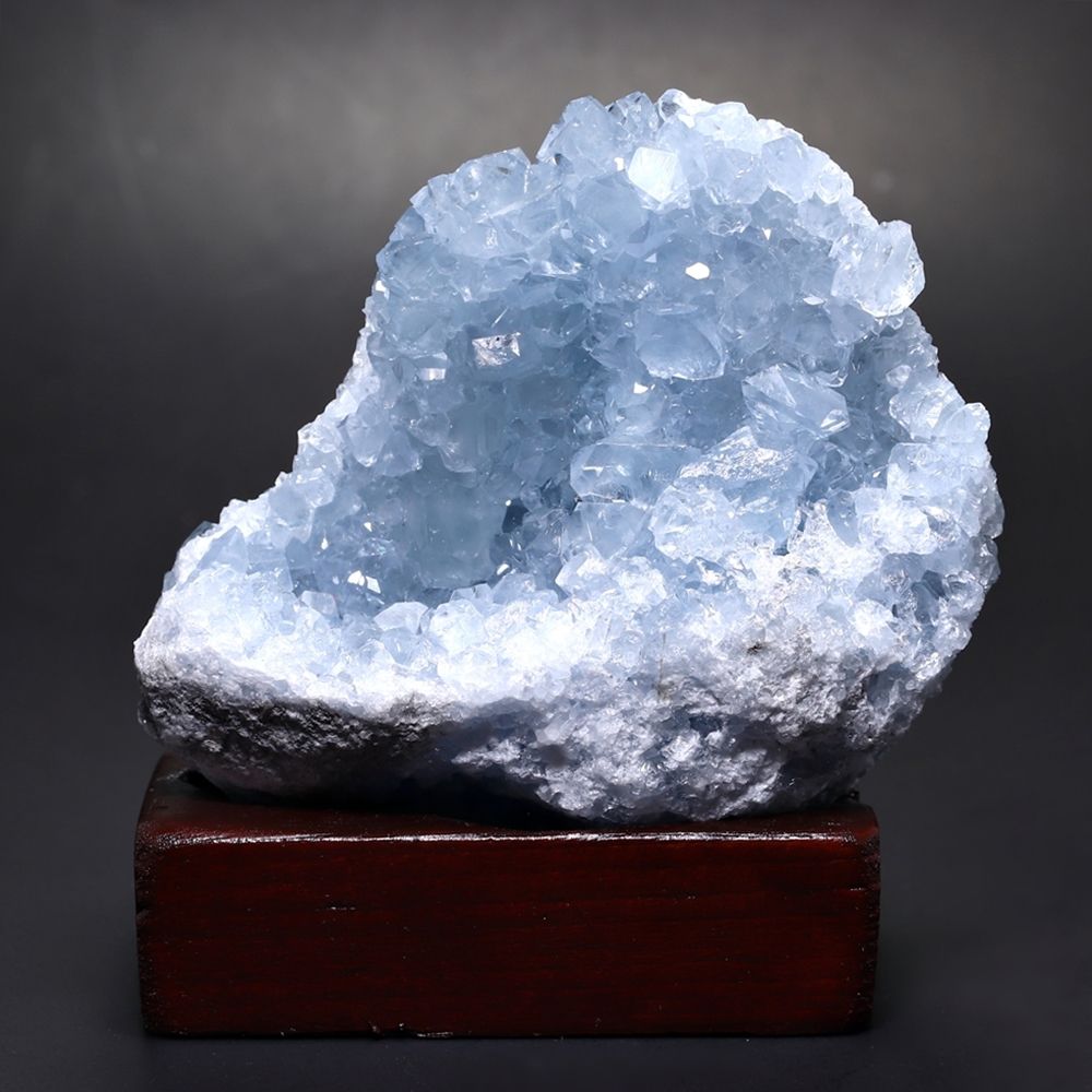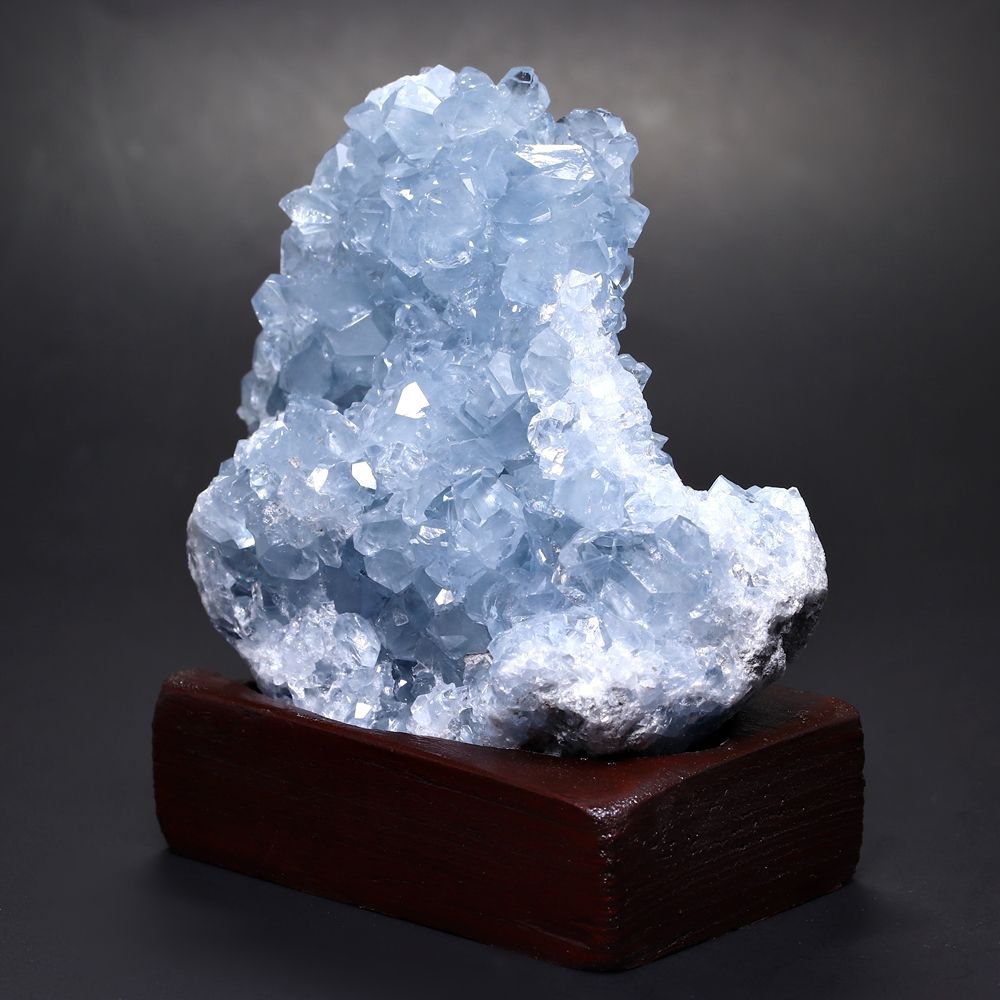 記念特価★[高品質++]セレスタイト結晶原石クラスター(専用木製台座付属)