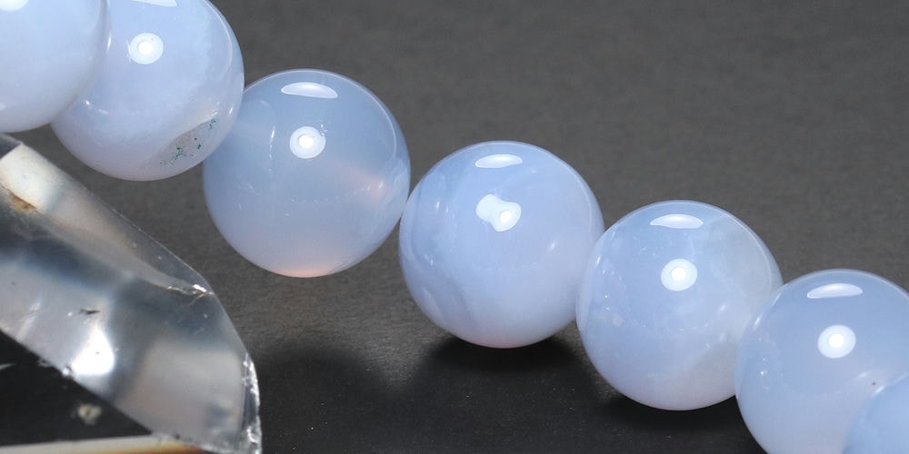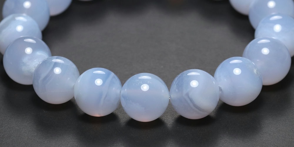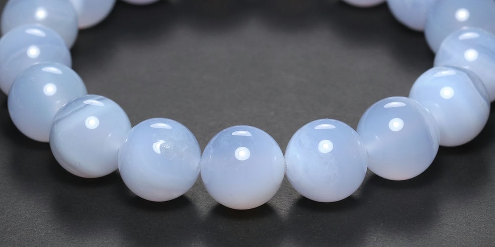 記念特価★[高品質]アフリカ産ブルーカルセドニーブレスレット(約12mm玉)