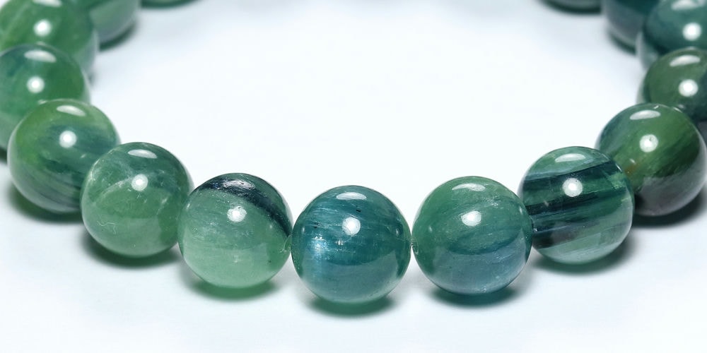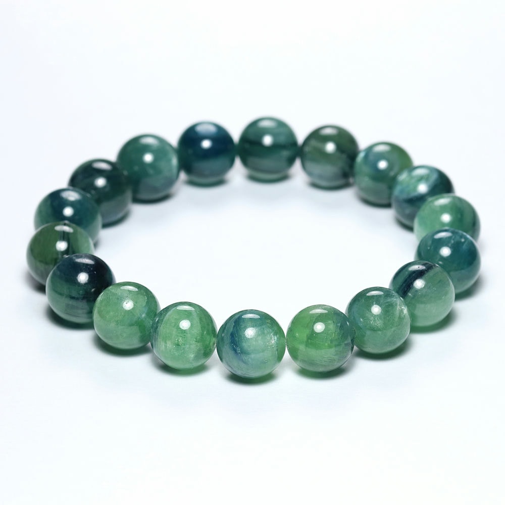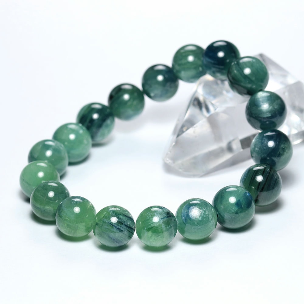 記念特価★[3A+]タンザニア産グリーンブルーカイヤナイトブレスレット(約12.5mm玉・キャッツアイ入りの玉あり!)