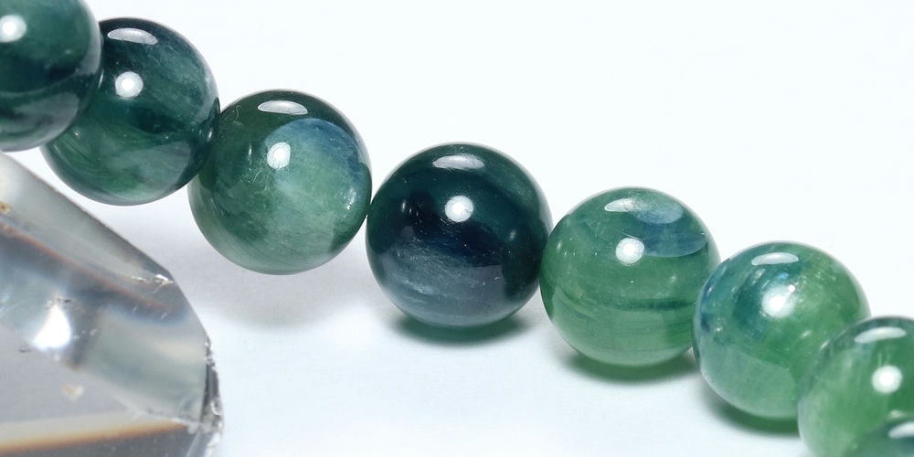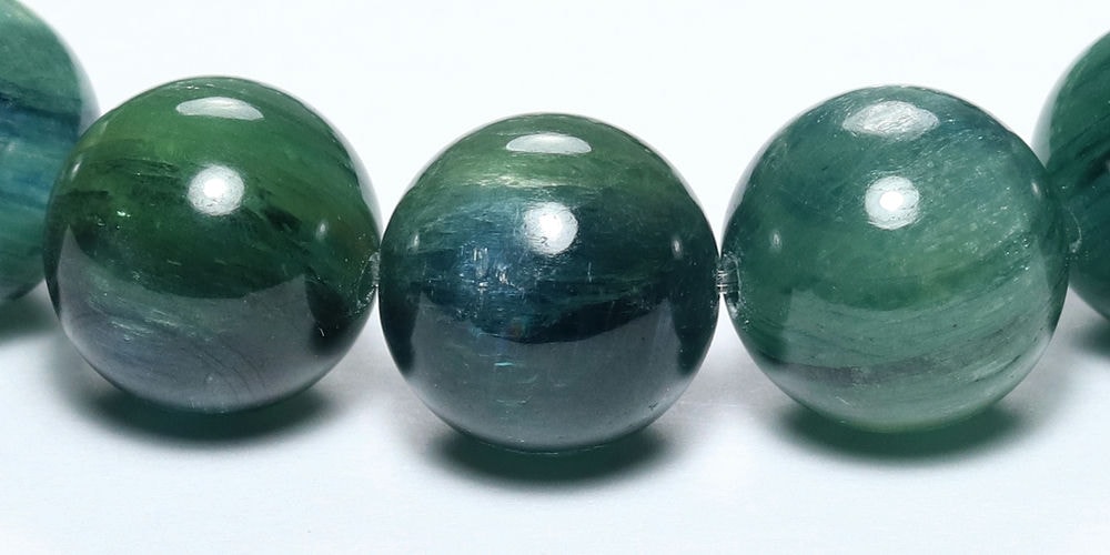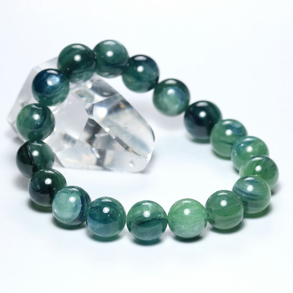 記念特価★[3A+]タンザニア産グリーンブルーカイヤナイトブレスレット(約12.5mm玉・キャッツアイ入りの玉あり!)¥10,000クイックガイド送料