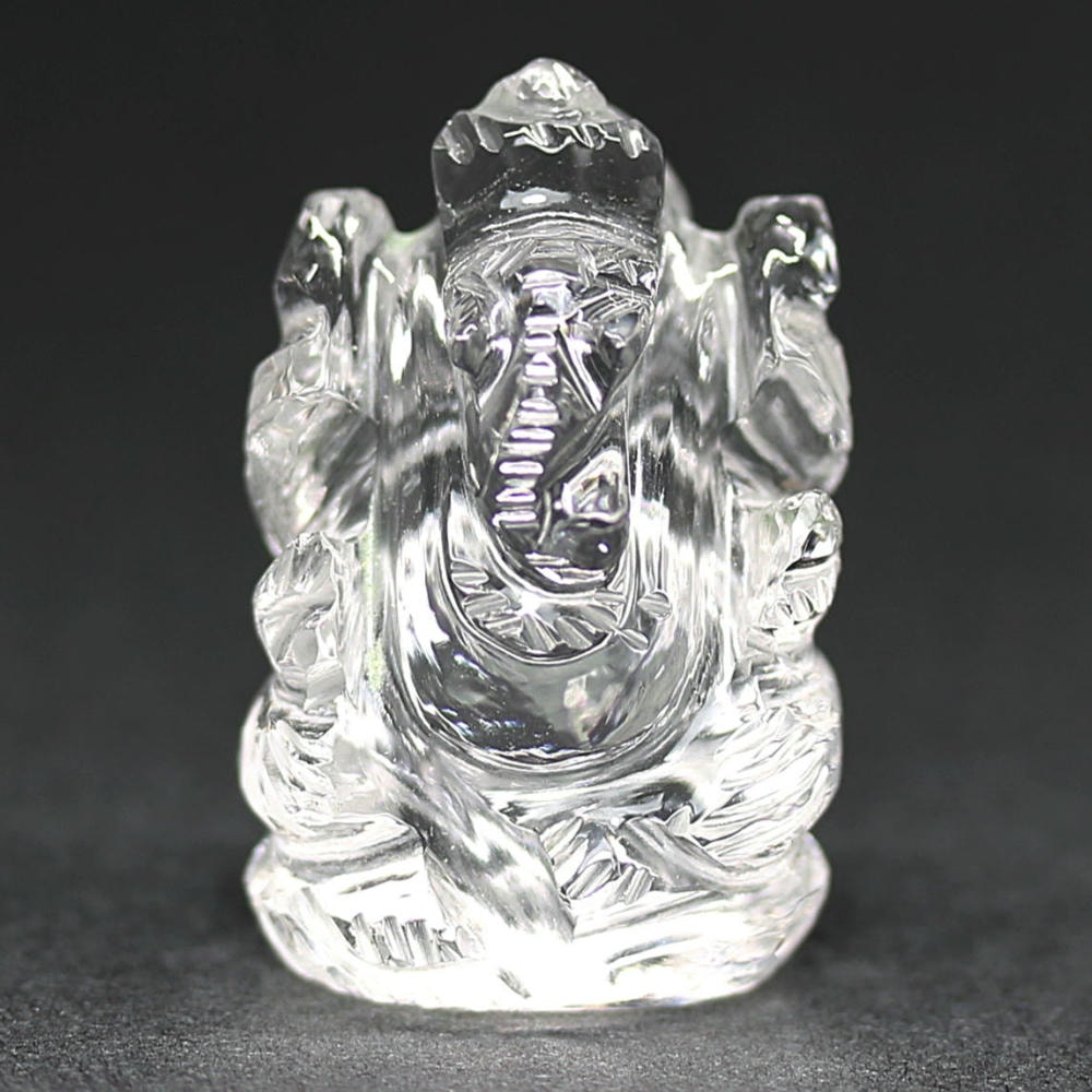 手に隠れる程よい大きさの水晶ガネーシャ像は、すべてインド職人による手彫りで作られた “1点物” です。一つ一つの表情が異なり、神々しさだけでなく、よくみるとどこか愛嬌もあります。