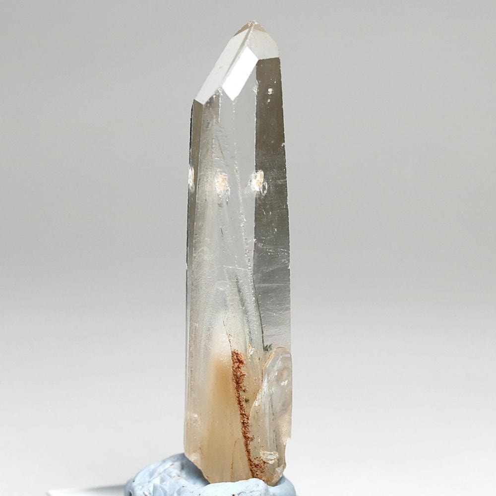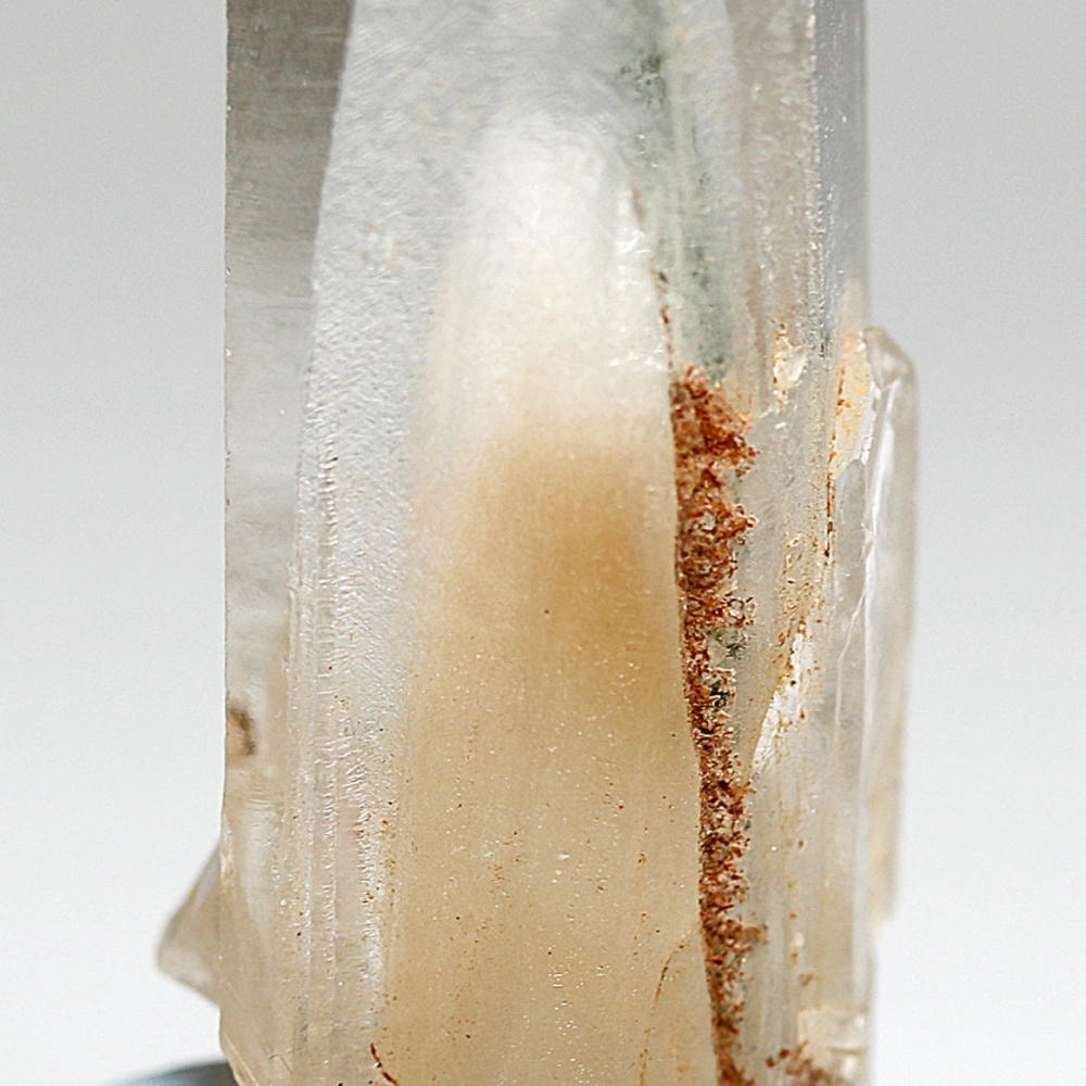 ご覧のホワイトファントムクォーツは、主にトレモライト(透閃石)および鉄分の影響を受けたオレンジアンフィボール(角閃石)と思われ、よくご覧になると白い鉱物が針状あるいは繊維状をしているのがご覧いただけます。