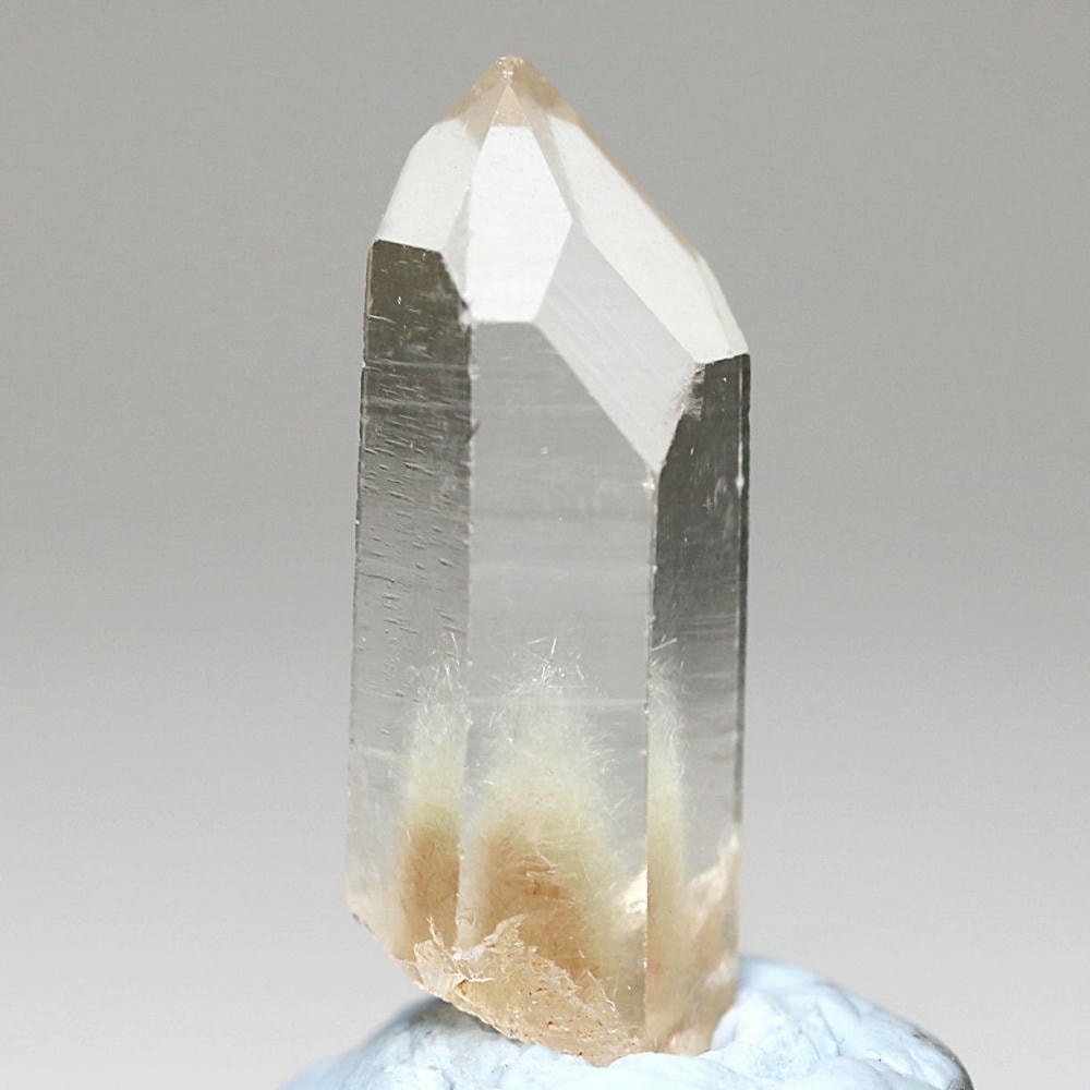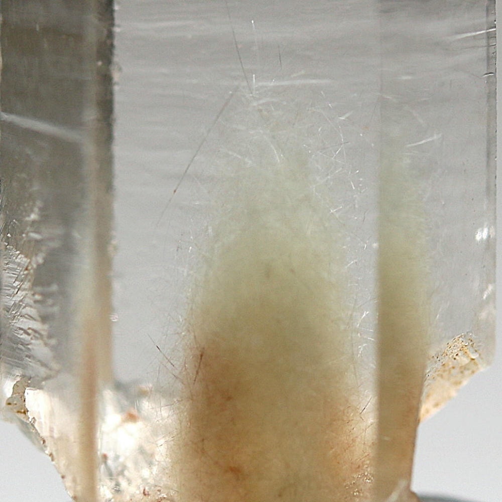 ご覧のホワイトファントムクォーツは、主にトレモライト(透閃石)および鉄分の影響を受けたオレンジアンフィボール(角閃石)と思われ、よくご覧になると白い鉱物が針状あるいは繊維状をしているのがご覧いただけます。