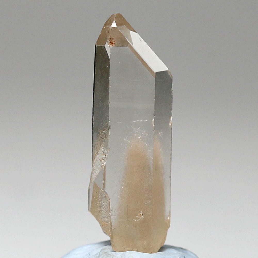 ご覧のホワイトファントムクォーツは、主にトレモライト(透閃石)および鉄分の影響を受けたオレンジアンフィボール(角閃石)と思われ、よくご覧になると白い鉱物が針状あるいは繊維状をしているのがご覧いただけます。