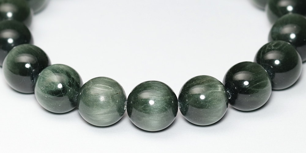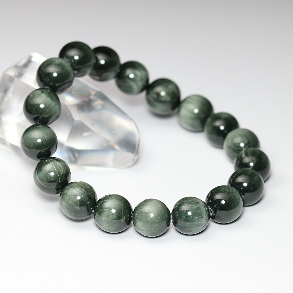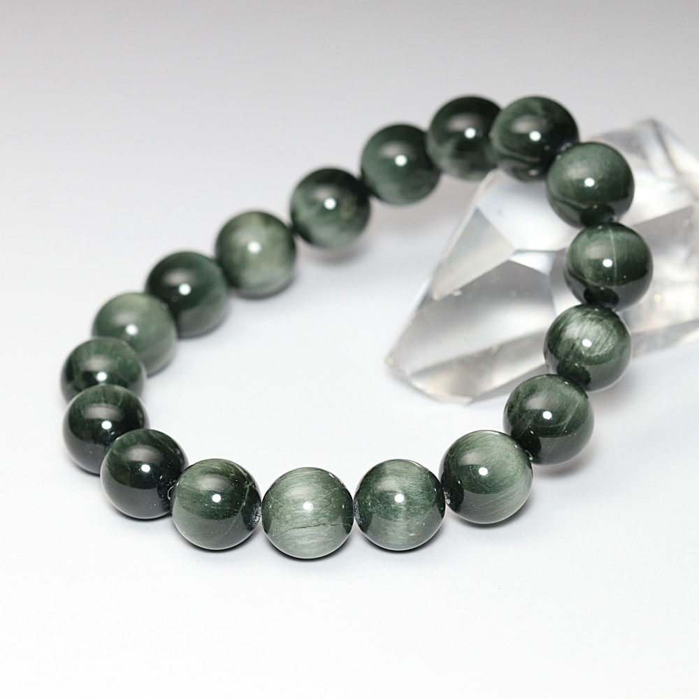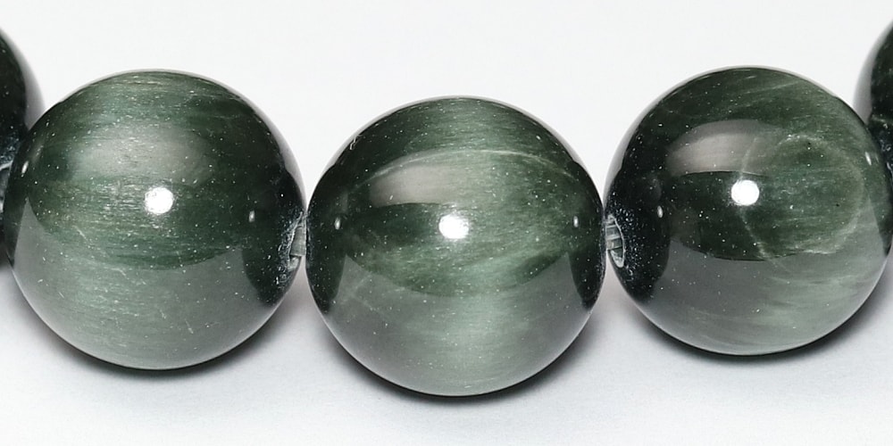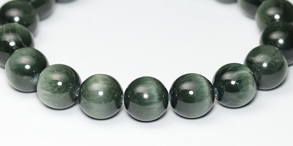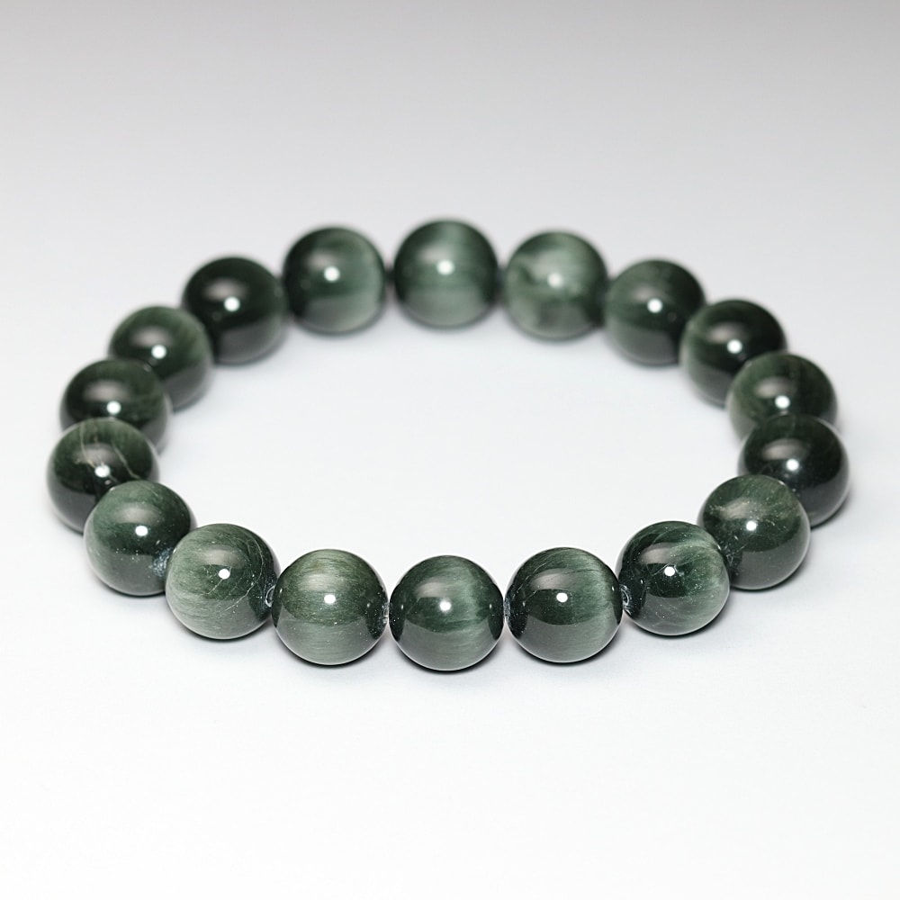 ご覧のお品は、傷や凹みが極めて少なく、色味・艶・キャッツアイの見え方や方向が素晴らしい、統一感あるトップ品質のブレスレットに仕上がっております。