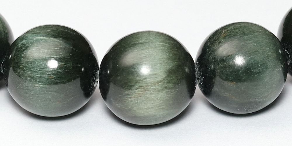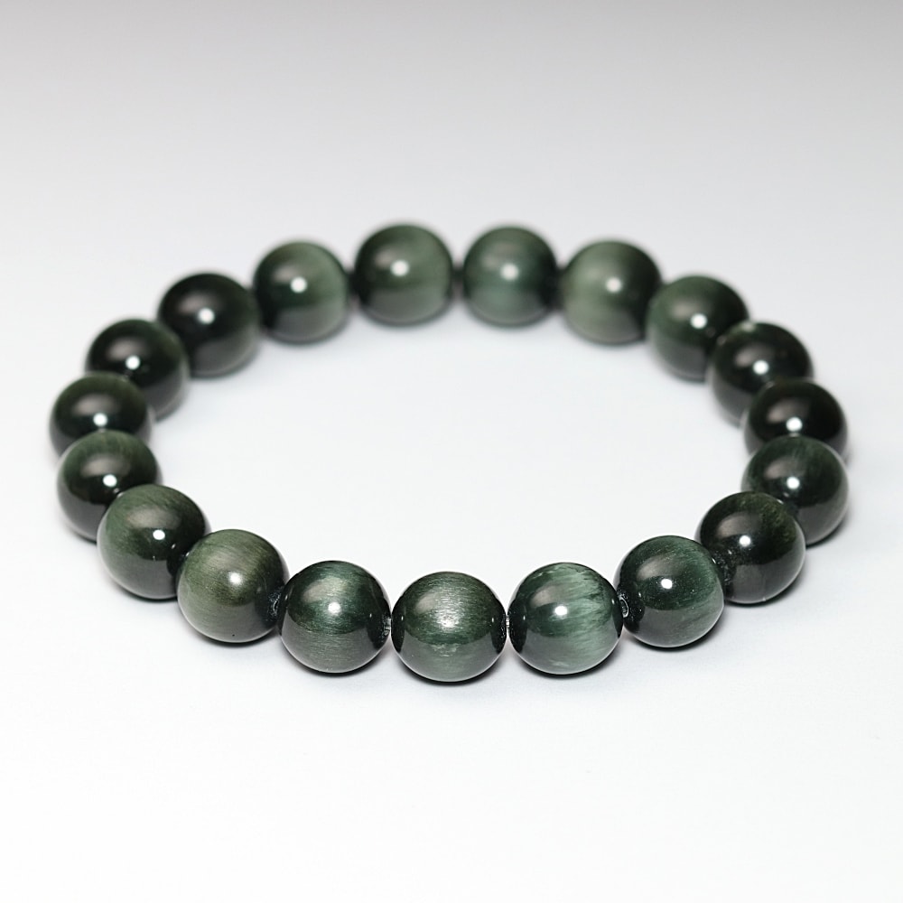 ご覧のお品は、傷や凹みが極めて少なく、色味・艶・キャッツアイの見え方や方向が素晴らしい、統一感あるトップ品質のブレスレットに仕上がっております。