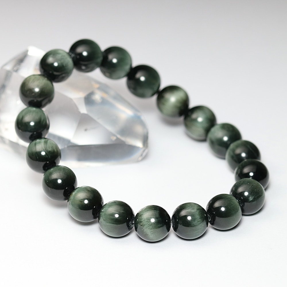 [トップクォリティ]グリーングレータイガーアイブレスレット(約10mm玉・イーグルアイ)¥16,200クイックガイド送料