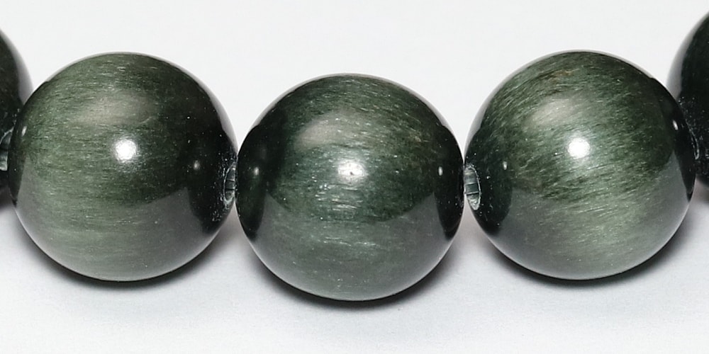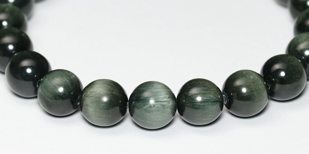 ご覧のお品は、傷や凹みが極めて少なく、色味・艶・キャッツアイの見え方や方向が素晴らしい、統一感あるトップ品質のブレスレットに仕上がっております。