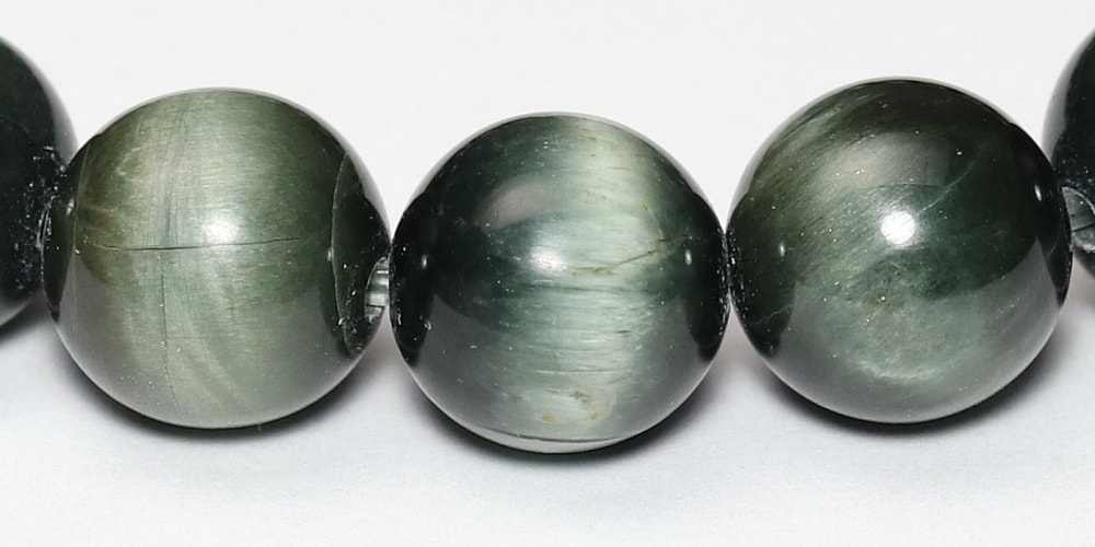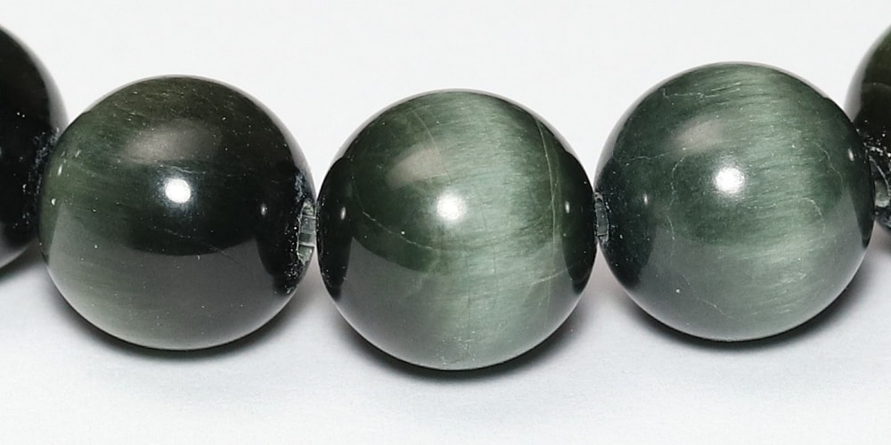 ご覧のお品は、傷や凹みが極めて少なく、色味・艶・キャッツアイの見え方や方向が素晴らしい、統一感あるトップ品質のブレスレットに仕上がっております。