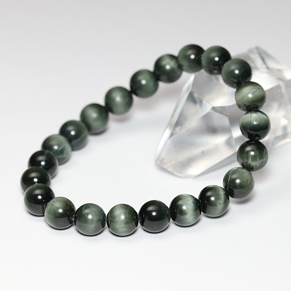 [トップクォリティ]グリーングレータイガーアイブレスレット(約8.5mm玉・イーグルアイ)¥12,400クイックガイド送料