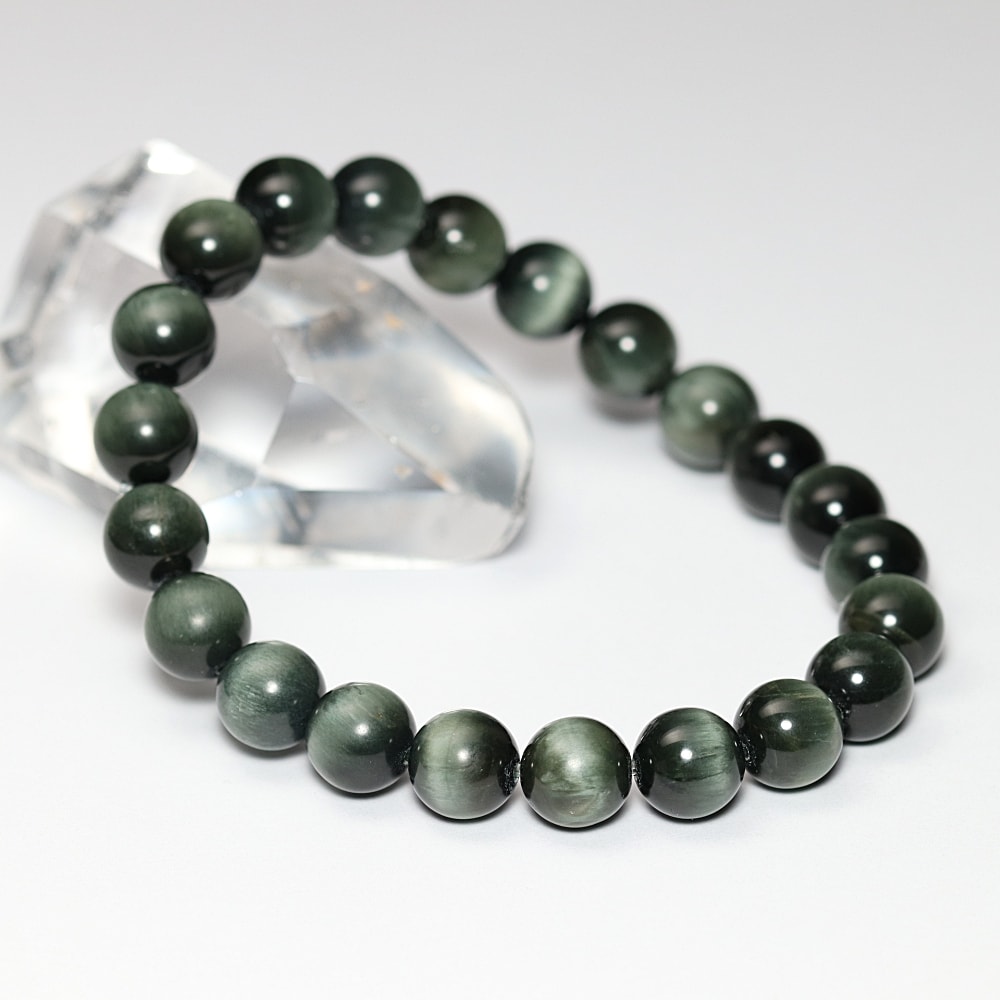 [トップクォリティ]グリーングレータイガーアイブレスレット(約8.5mm玉・イーグルアイ)