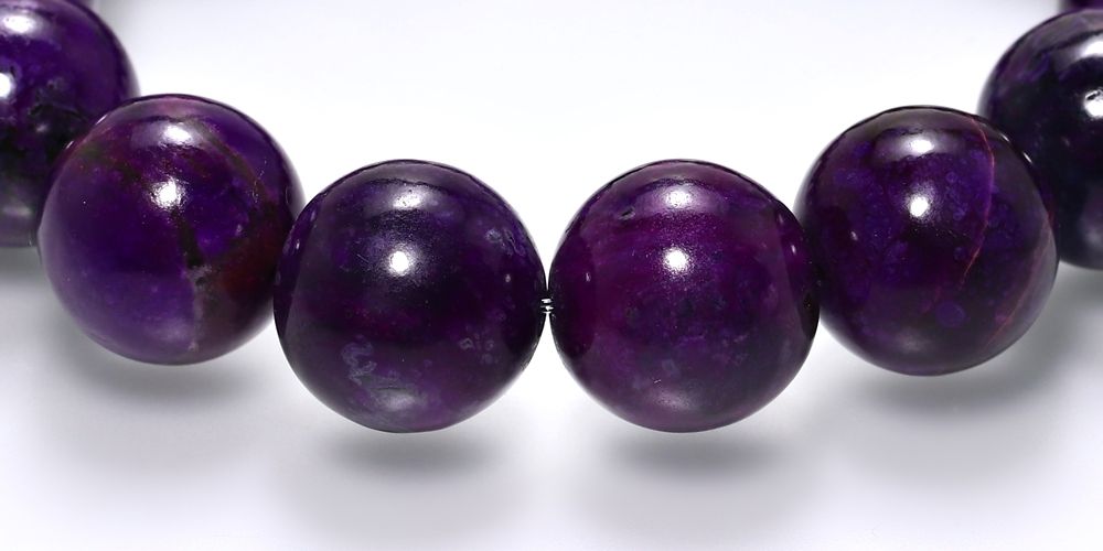 ご覧のお品は、照り艶美しく、発色良い14.5mm大玉のパープルスギライトで組み上げた、非常に希少なブレスレットに仕上がっております。
