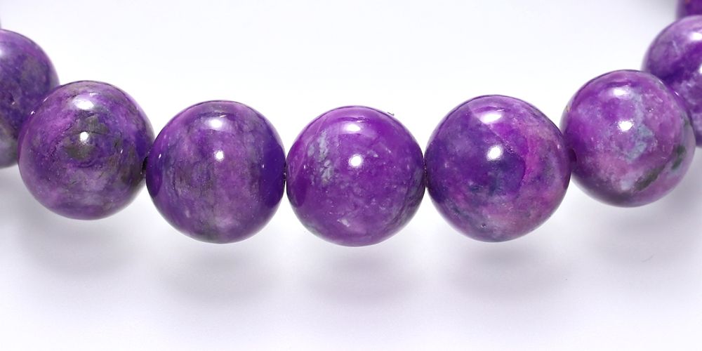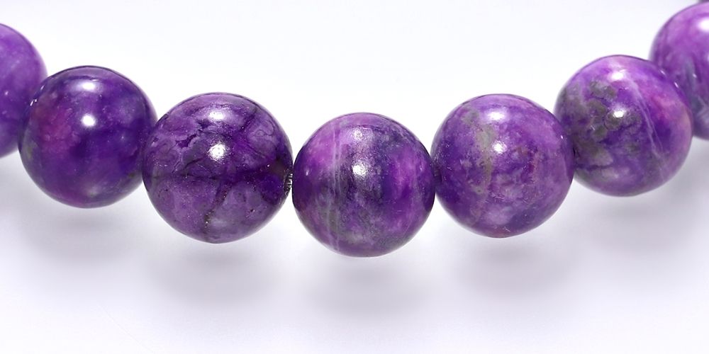 ご覧のお品は、照り艶美しく、発色良い9.5mm玉のパープルスギライトで組み上げた、非常に希少なブレスレットに仕上がっております。