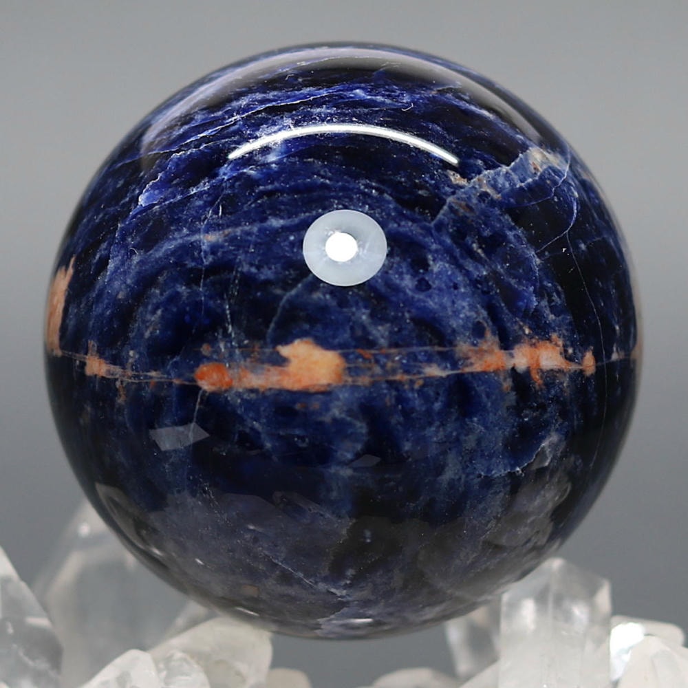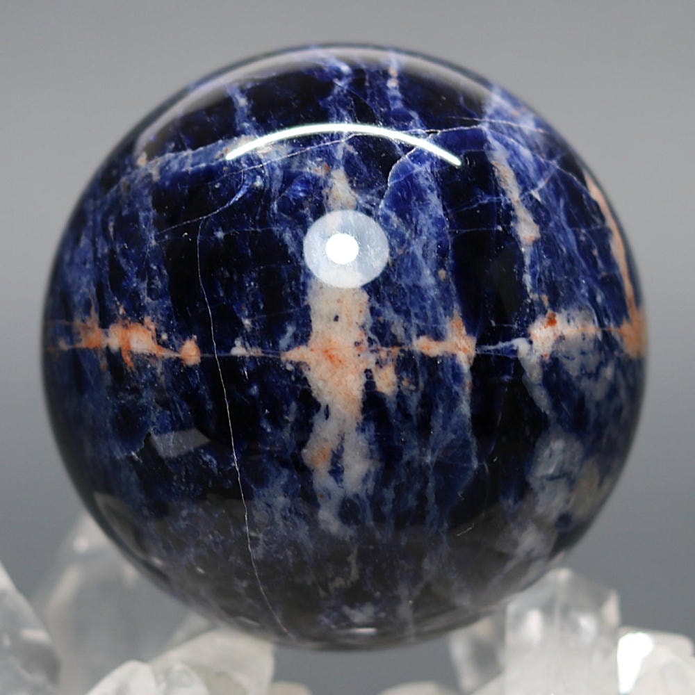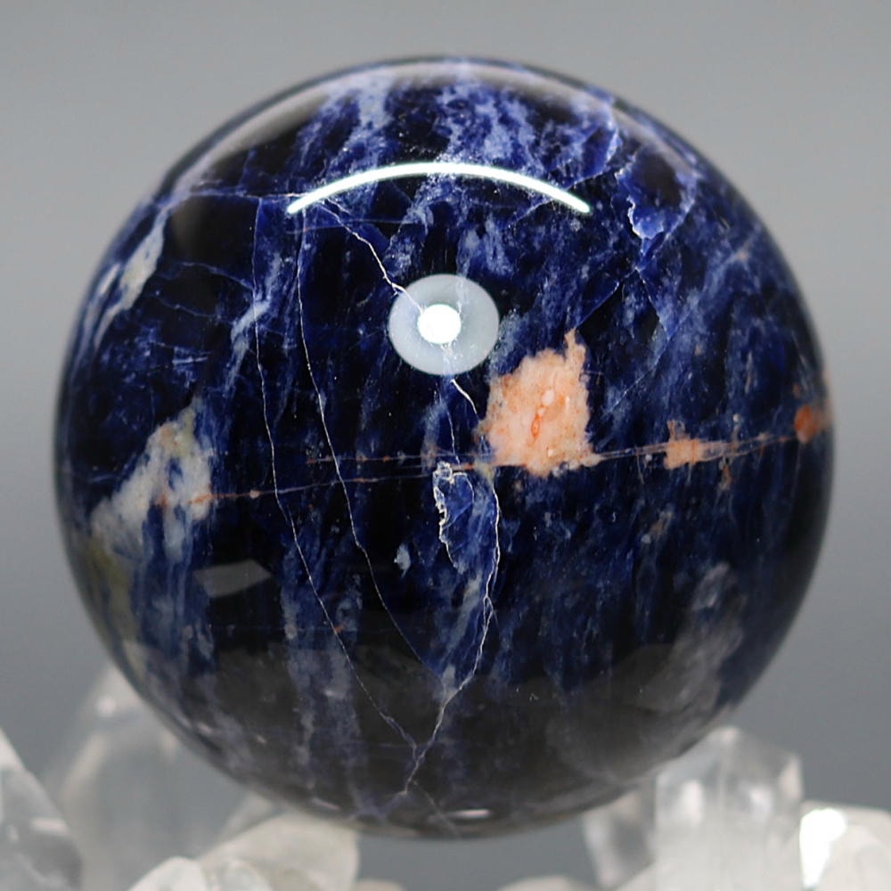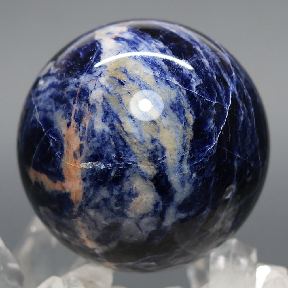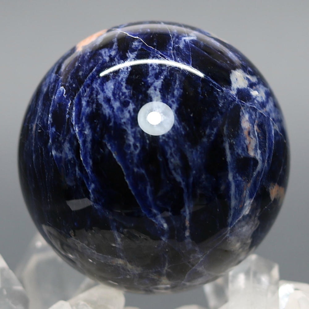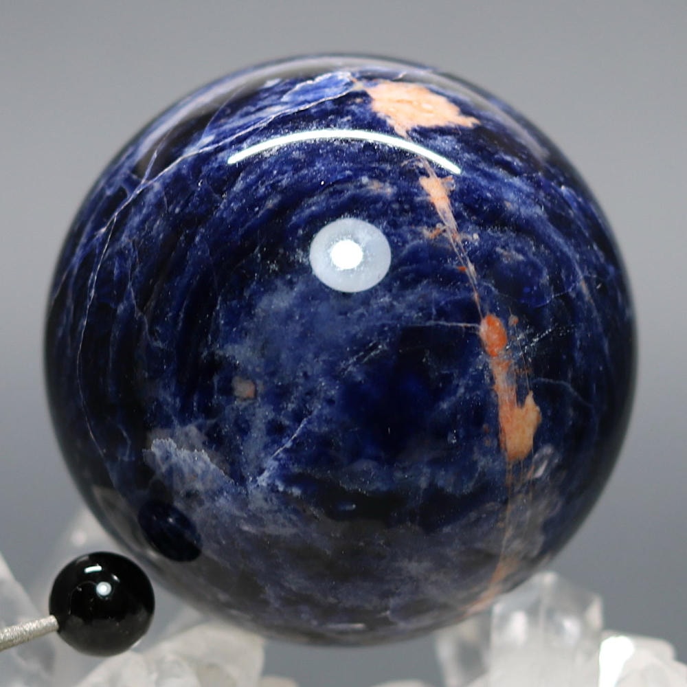 ご覧のお品は、良質なアフリカ産の天然ソーダライト原石を削り出し磨き上げた天然石丸玉(スフィア)でございます。