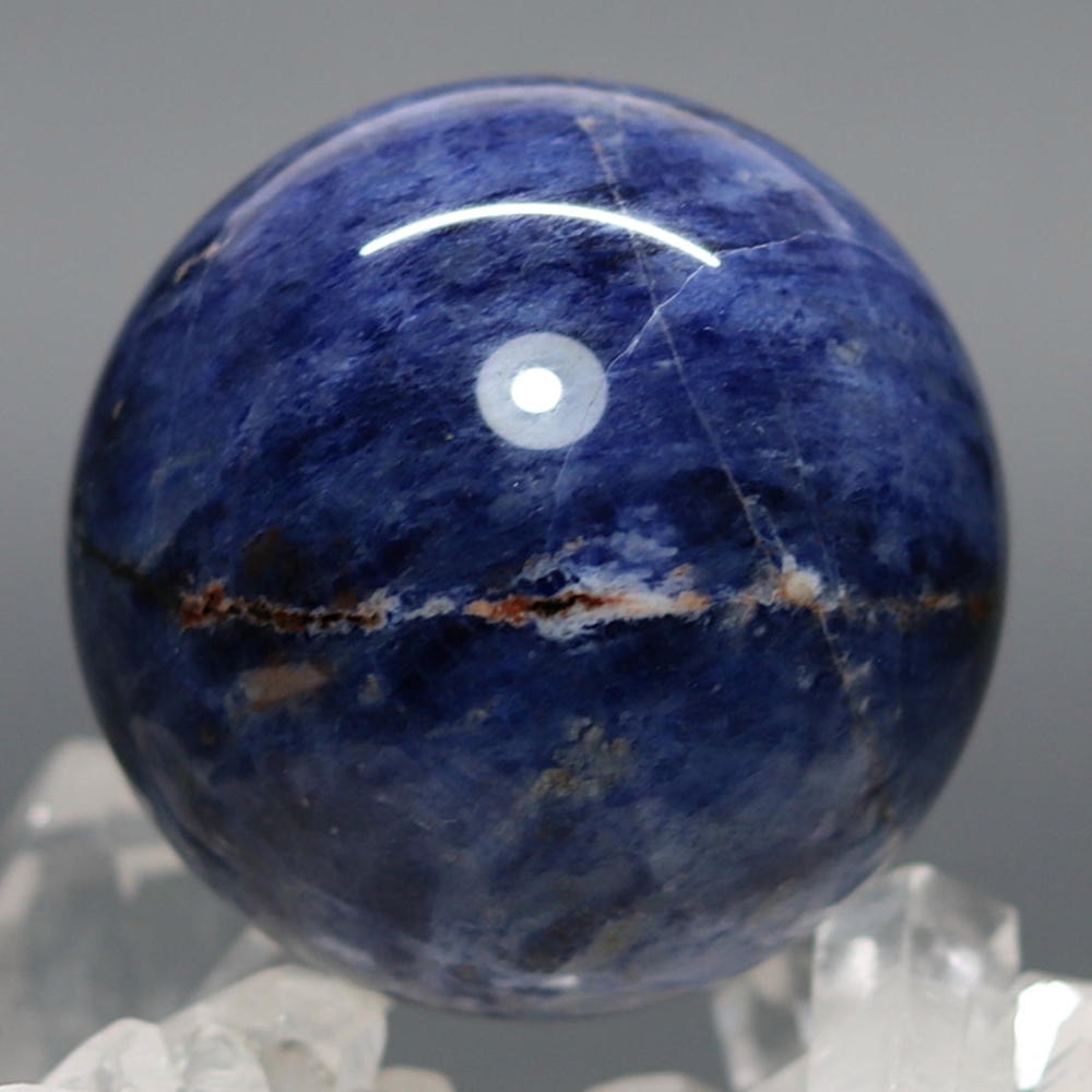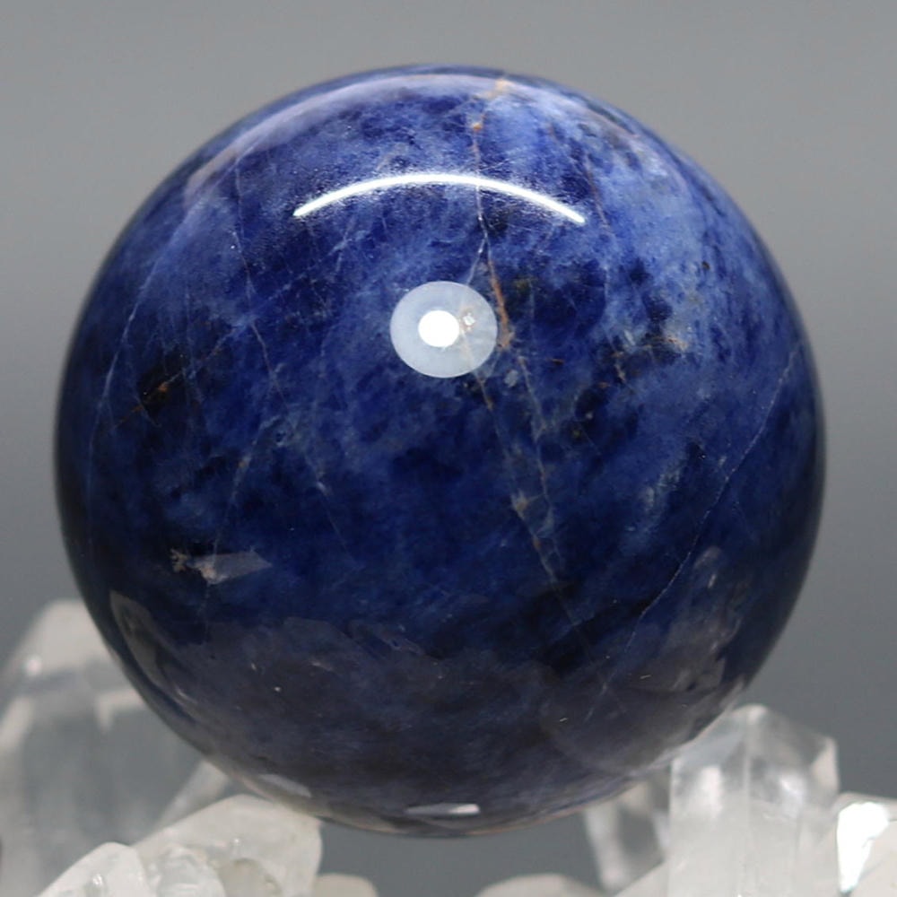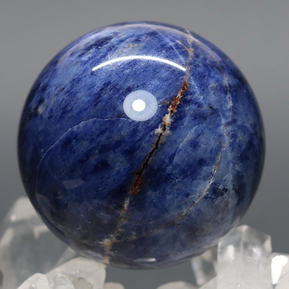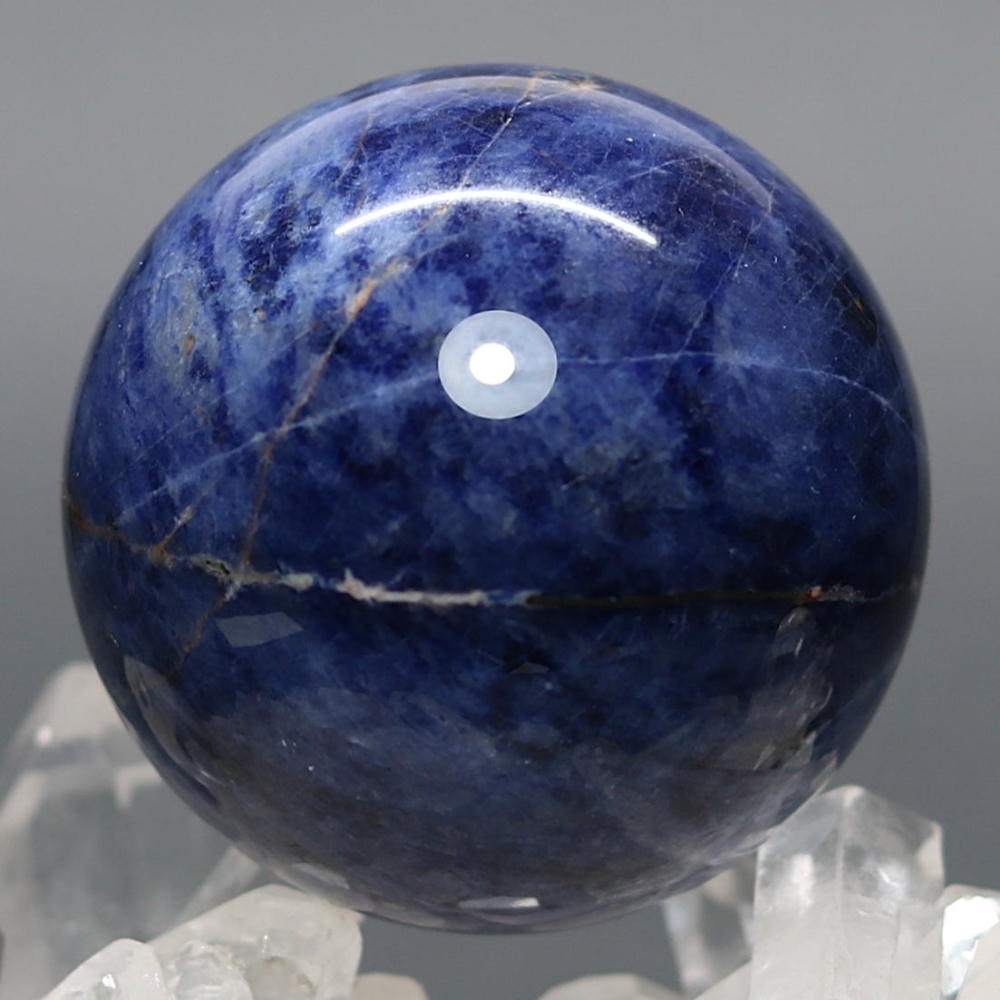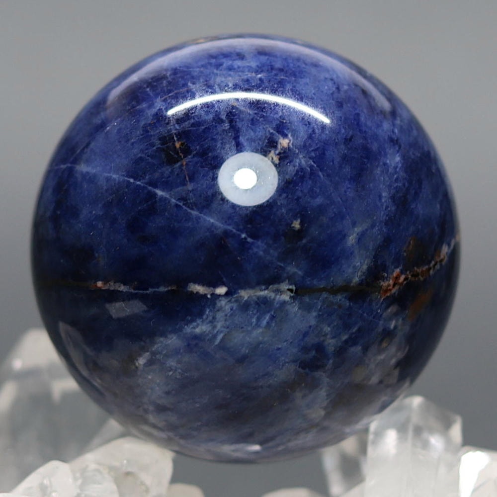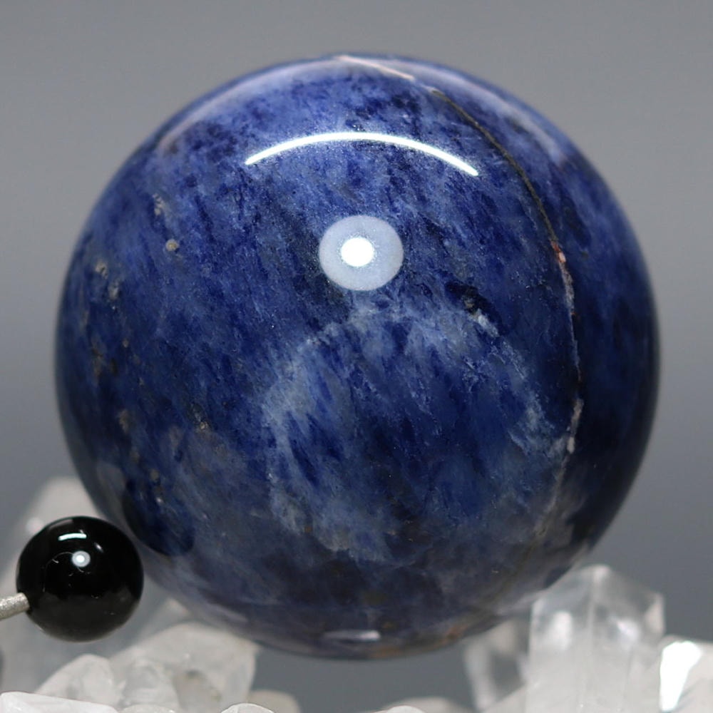 ご覧のお品は、良質なアフリカ産の天然ソーダライト原石を削り出し磨き上げた天然石丸玉(スフィア)でございます。