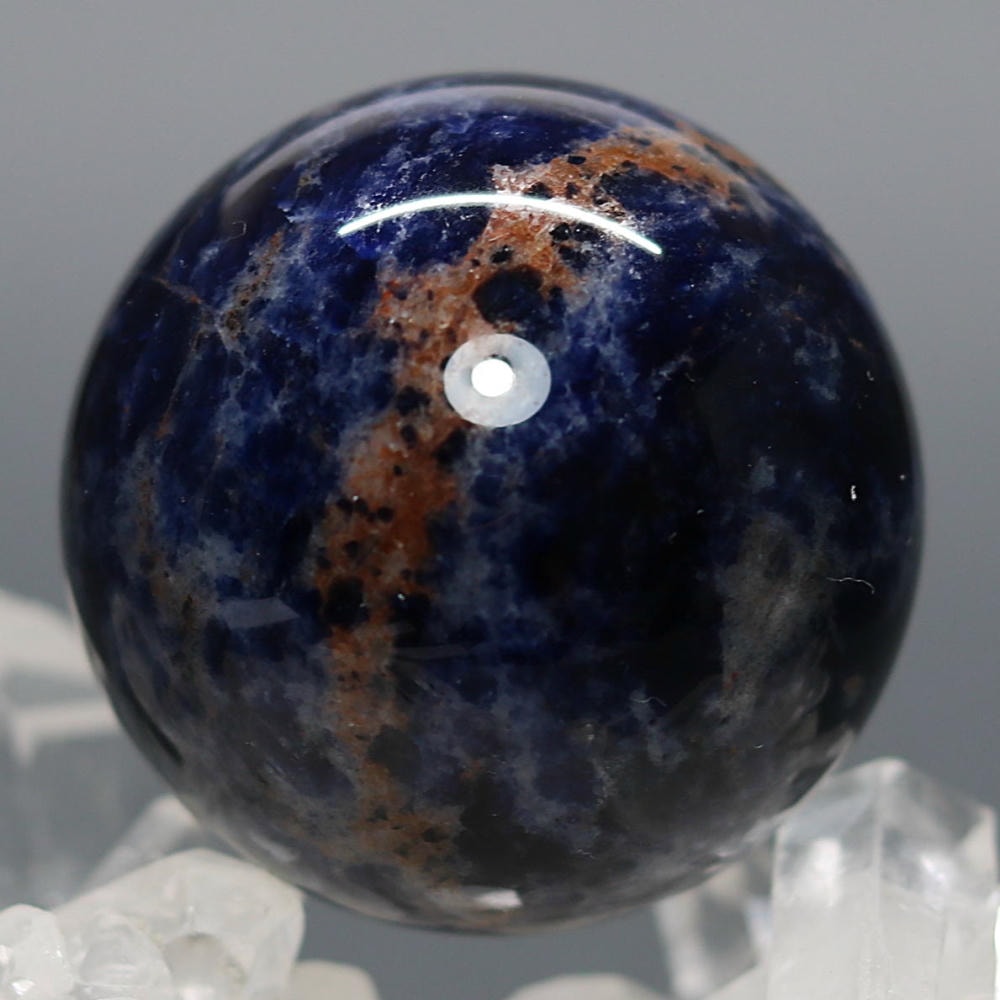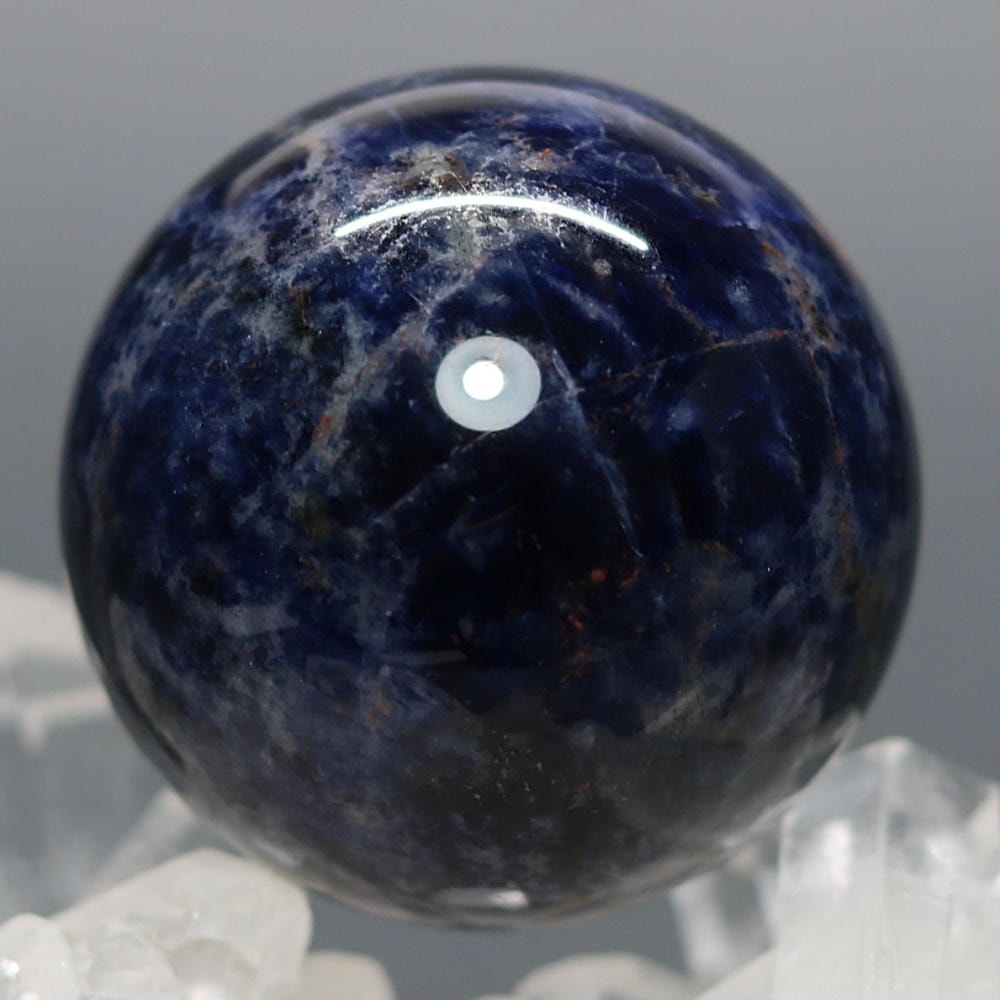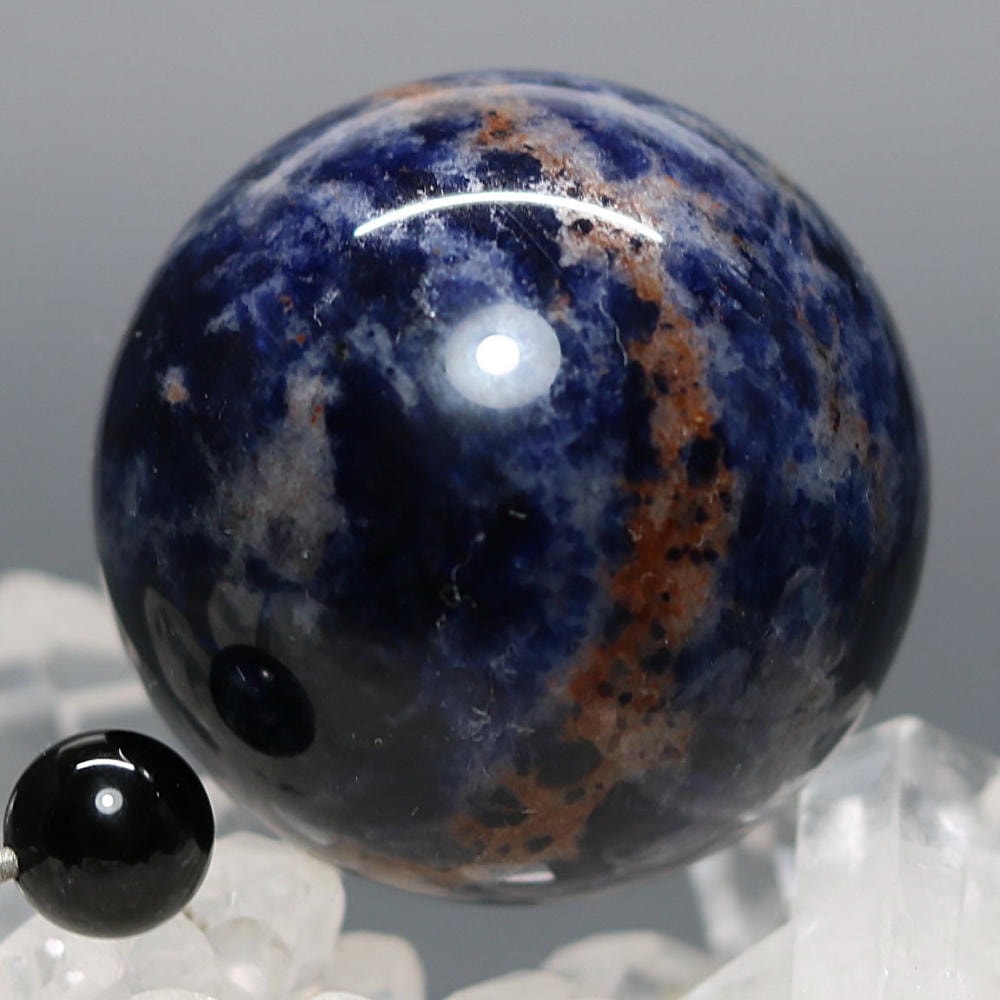 ご覧のお品は、良質なアフリカ産の天然ソーダライト原石を削り出し磨き上げた天然石丸玉(スフィア)でございます。