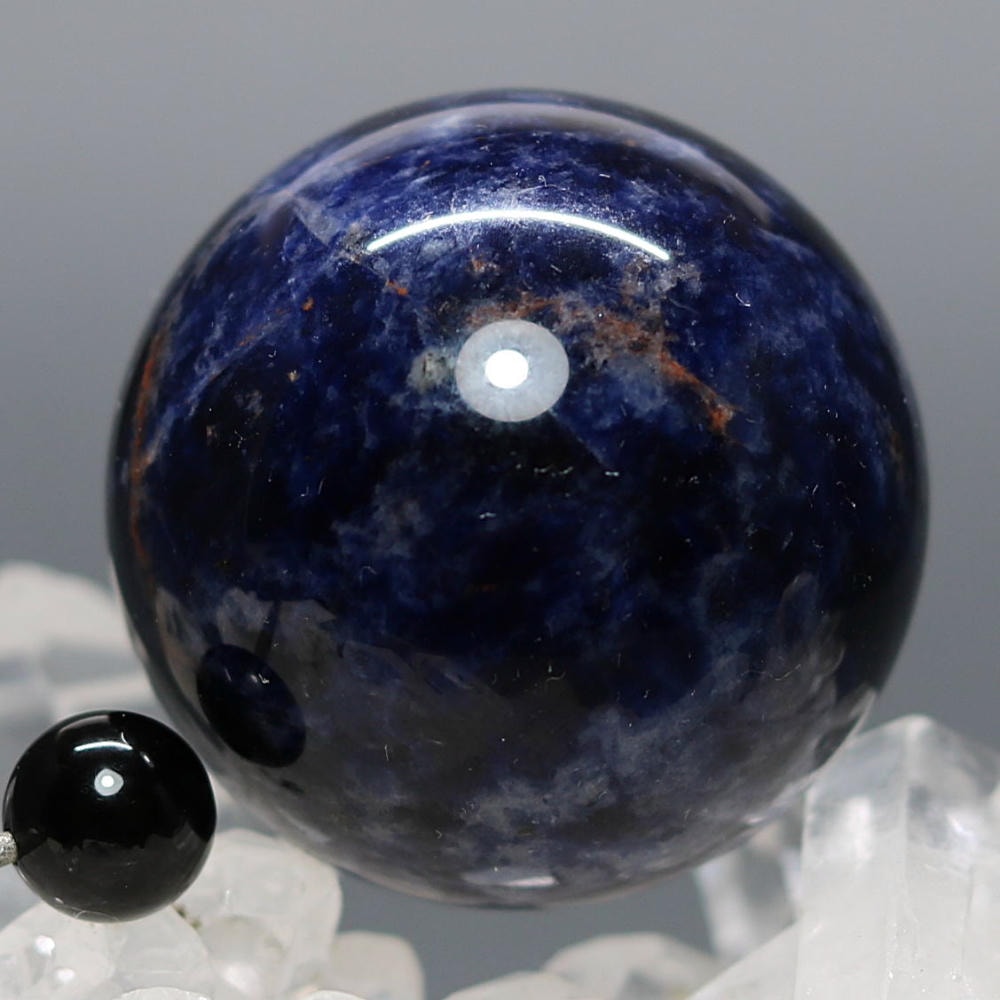 ご覧のお品は、良質なアフリカ産の天然ソーダライト原石を削り出し磨き上げた天然石丸玉(スフィア)でございます。