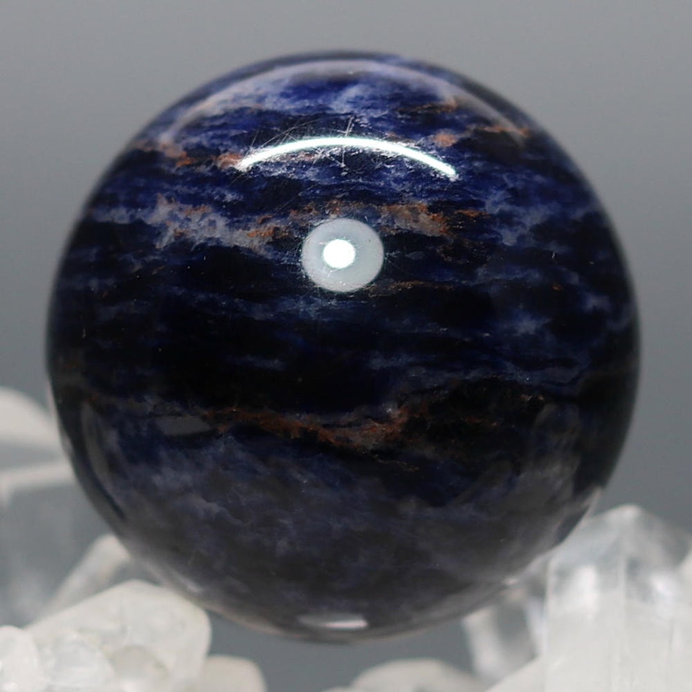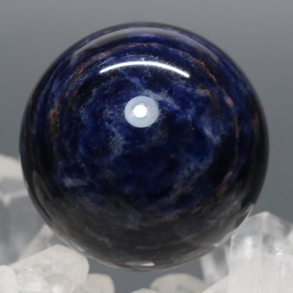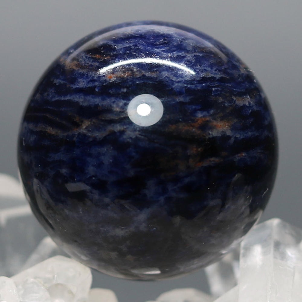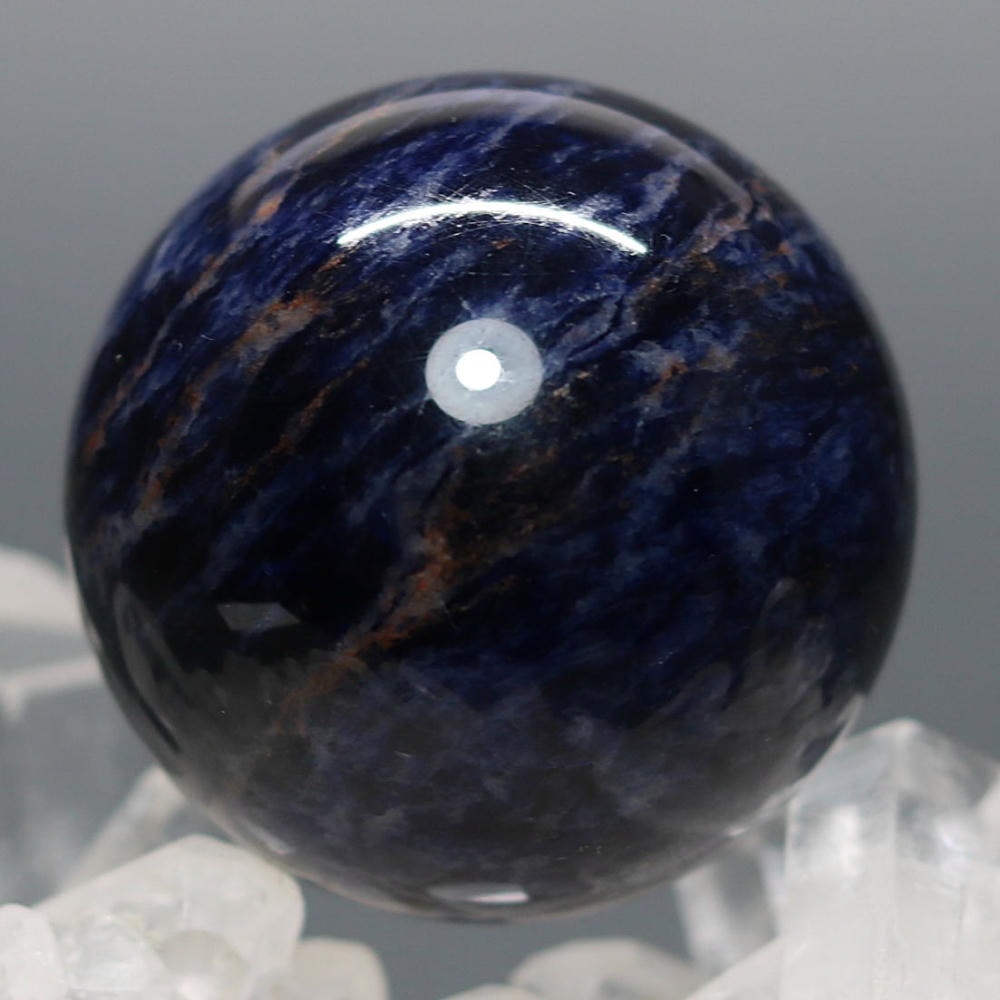 ご覧のお品は、良質なアフリカ産の天然ソーダライト原石を削り出し磨き上げた天然石丸玉(スフィア)でございます。