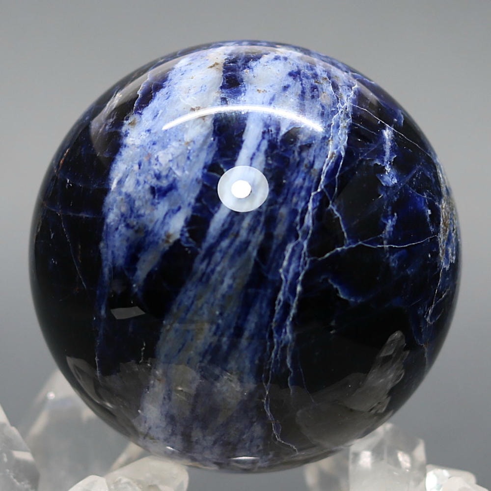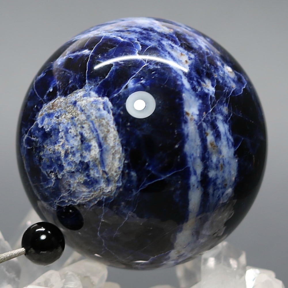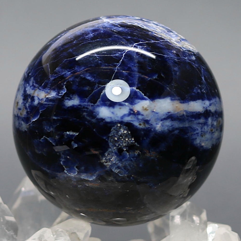 ご覧のお品は、良質なアフリカ産の天然ソーダライト原石を削り出し磨き上げた天然石丸玉(スフィア)でございます。
