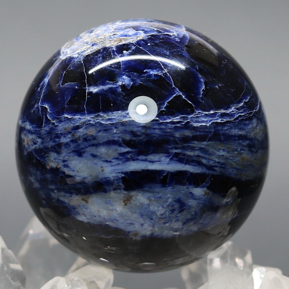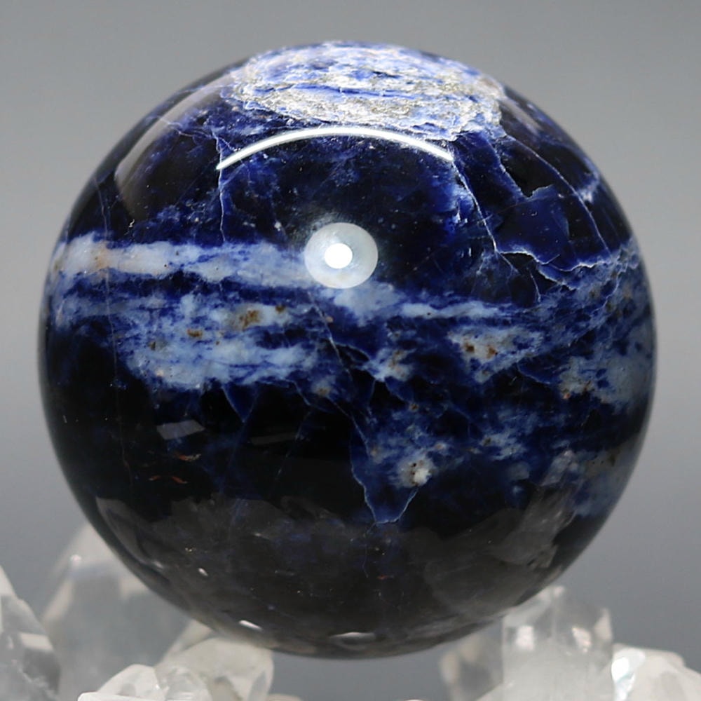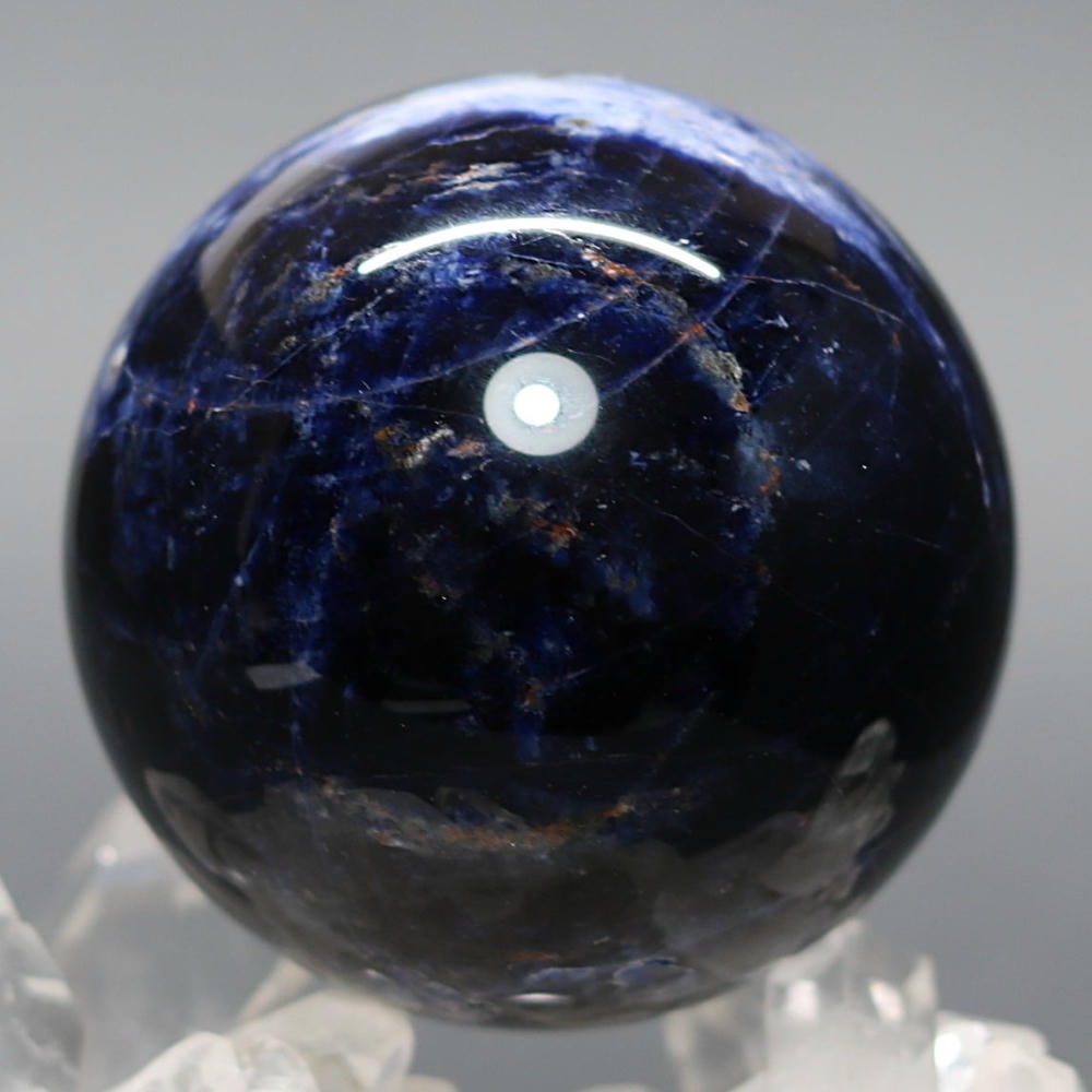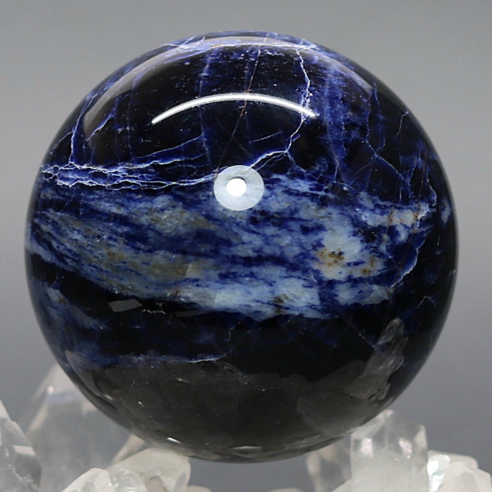 ご覧のお品は、良質なアフリカ産の天然ソーダライト原石を削り出し磨き上げた天然石丸玉(スフィア)でございます。