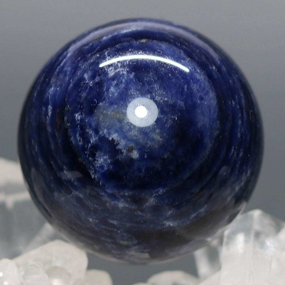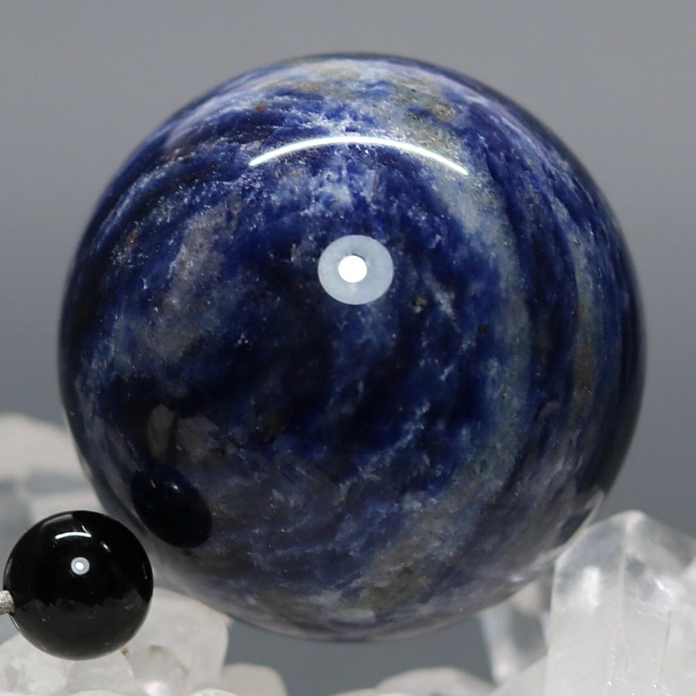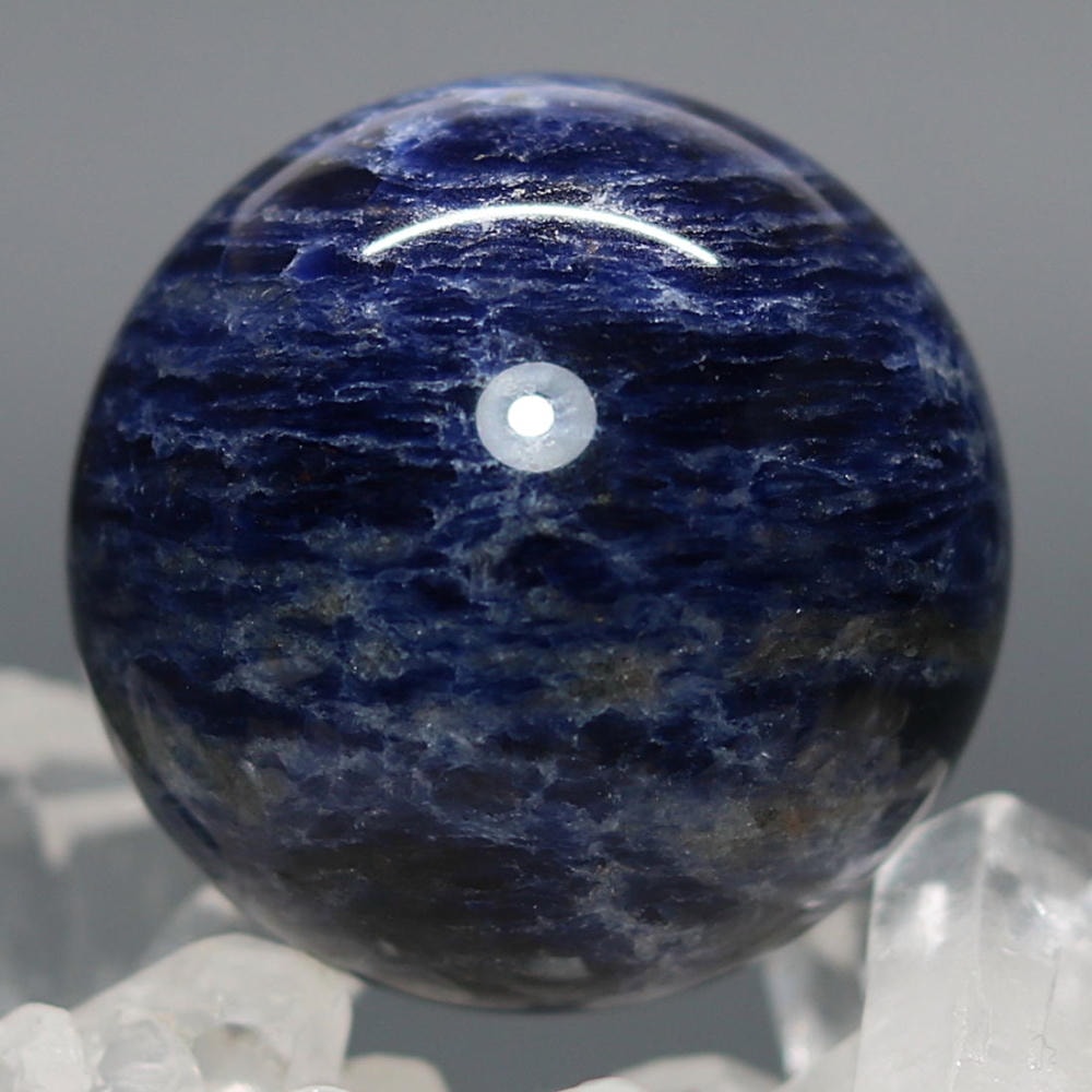 ご覧のお品は、良質なアフリカ産の天然ソーダライト原石を削り出し磨き上げた天然石丸玉(スフィア)でございます。