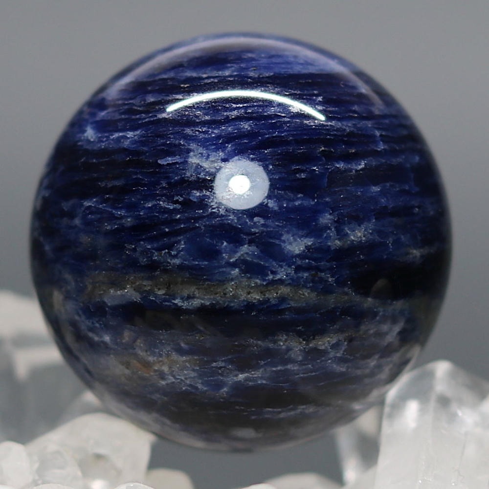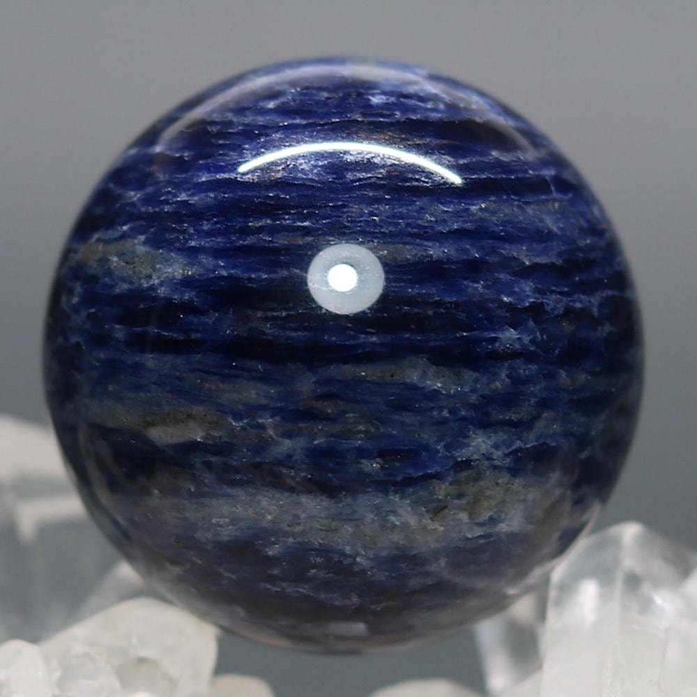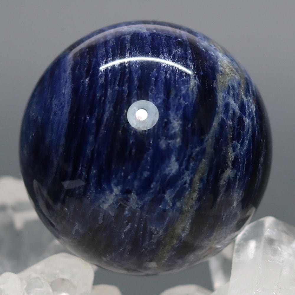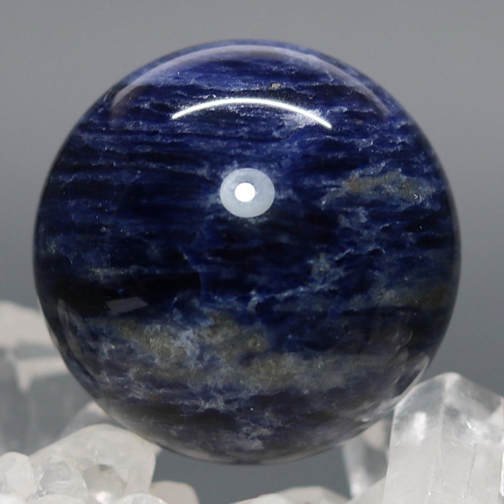 ご覧のお品は、良質なアフリカ産の天然ソーダライト原石を削り出し磨き上げた天然石丸玉(スフィア)でございます。