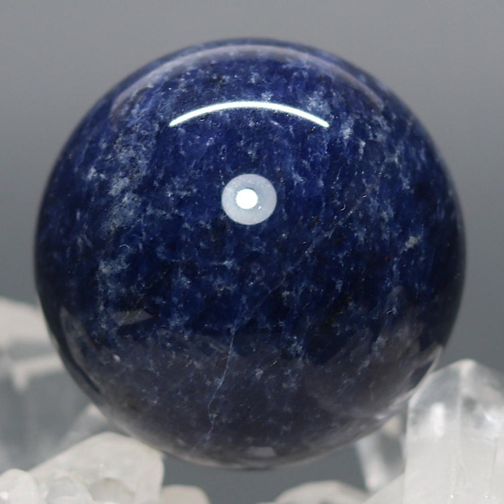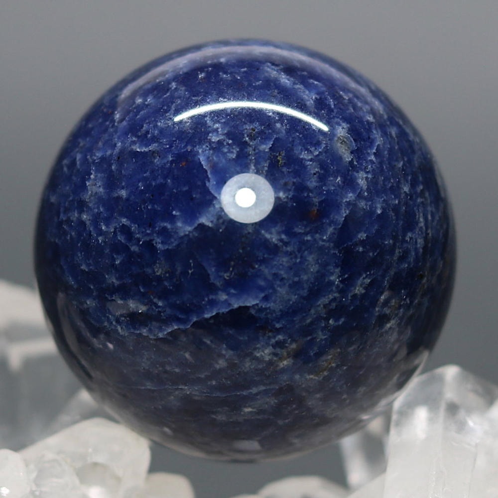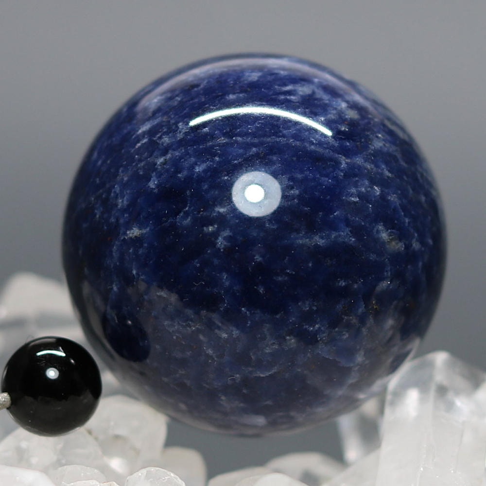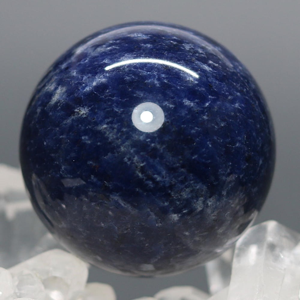 ご覧のお品は、良質なアフリカ産の天然ソーダライト原石を削り出し磨き上げた天然石丸玉(スフィア)でございます。