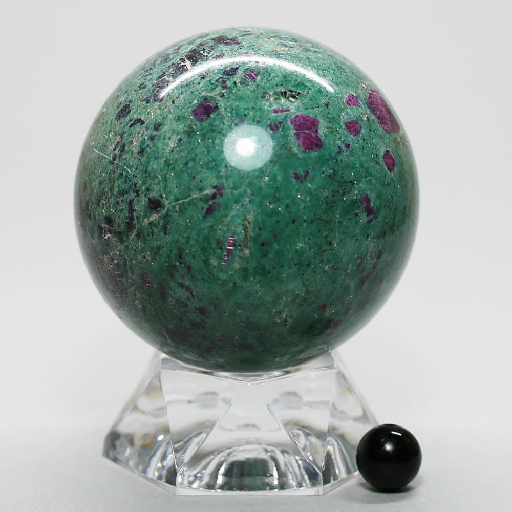記念特価★インド産ルビーインゾイサイト丸玉/スフィア(直径55.0mm)