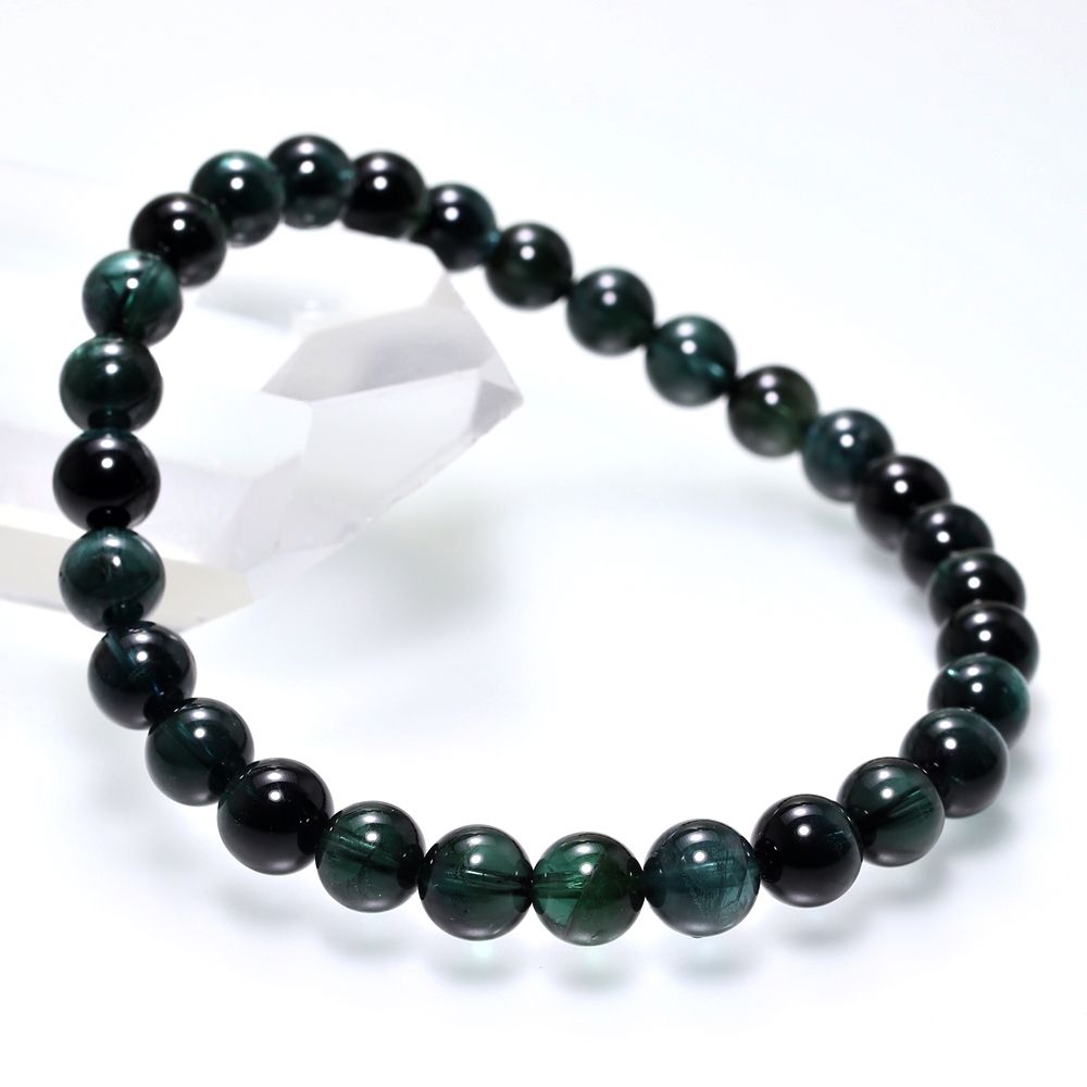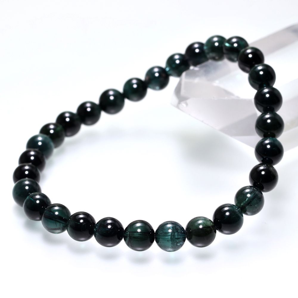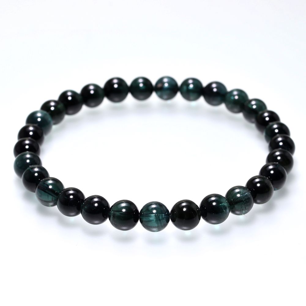[希少カラー/高品質+]ブラックブルートルマリンブレスレット(約6.5mm玉)