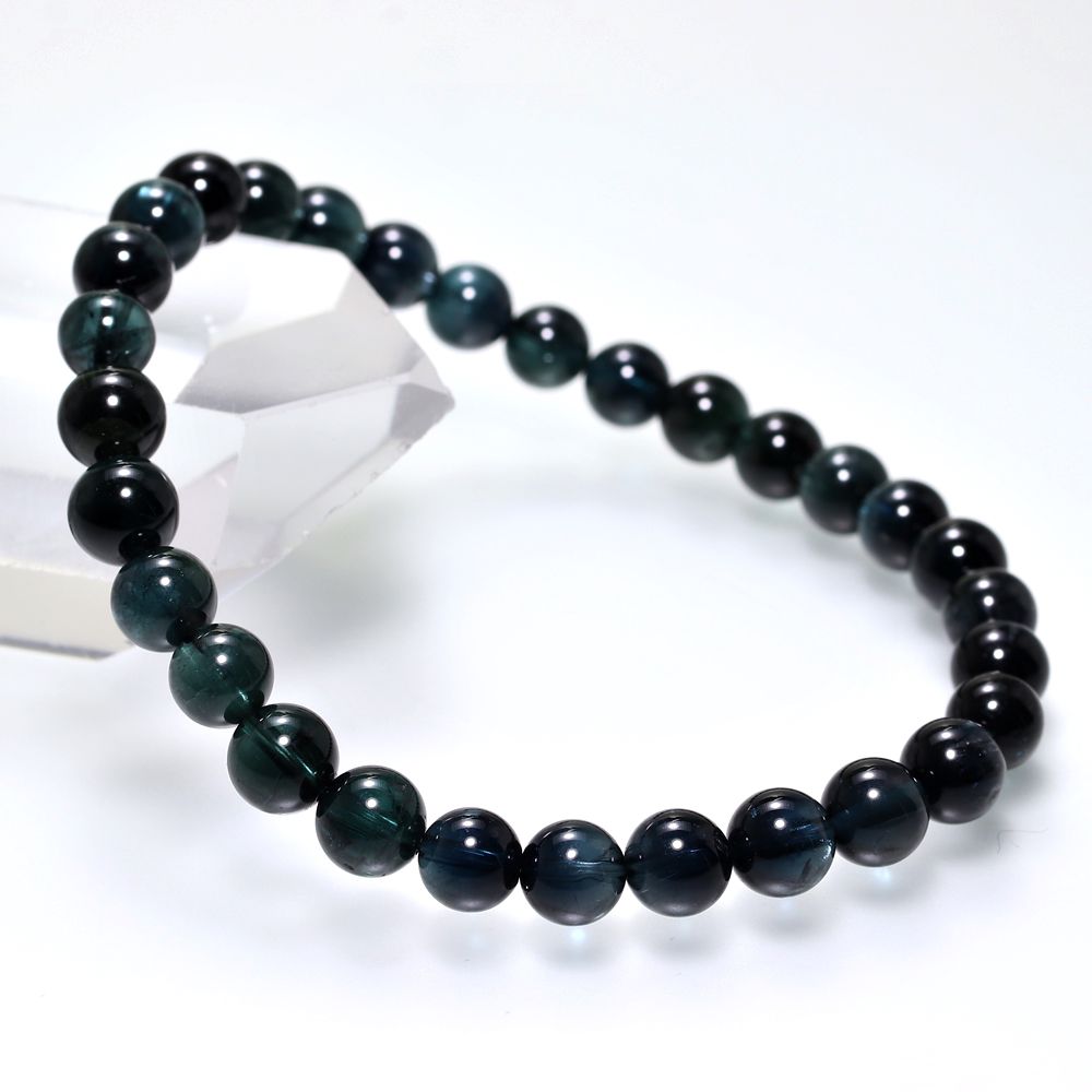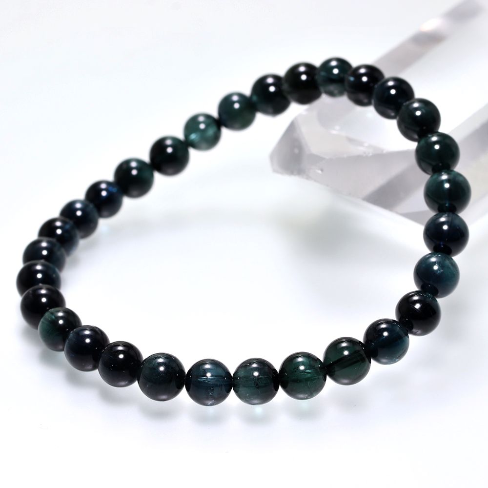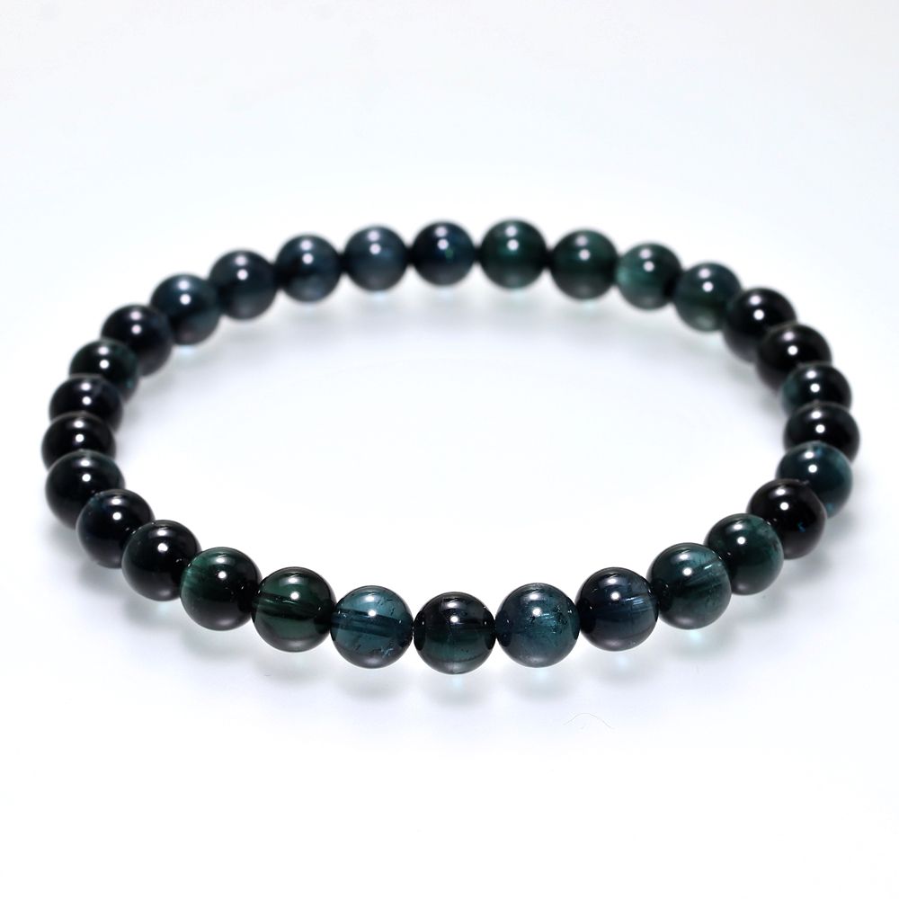 [希少カラー/高品質+]ブラックブルートルマリンブレスレット(約6.5mm玉)