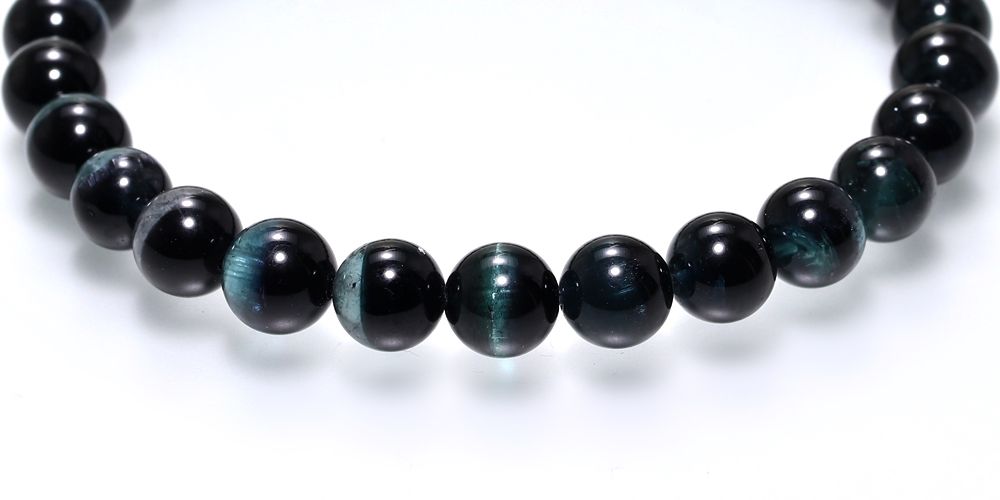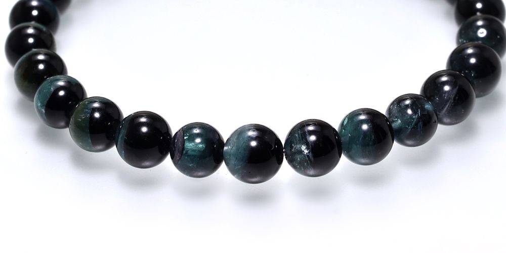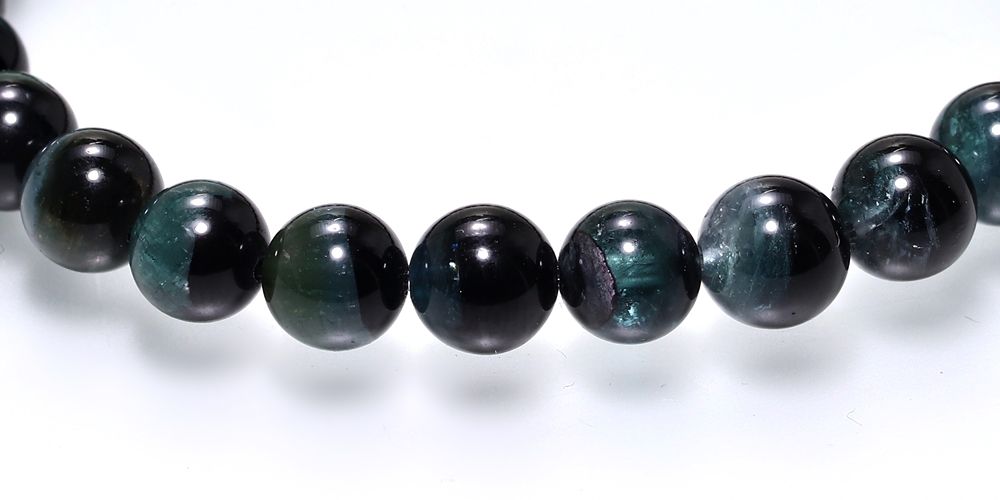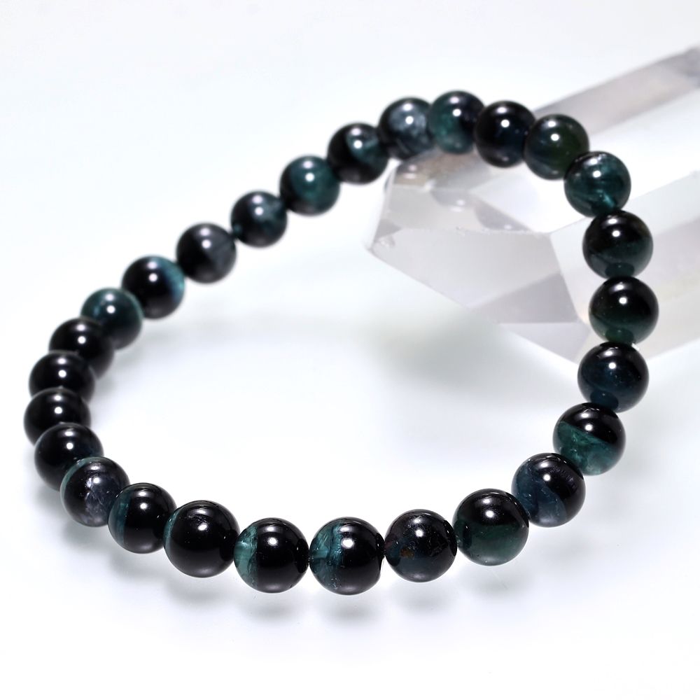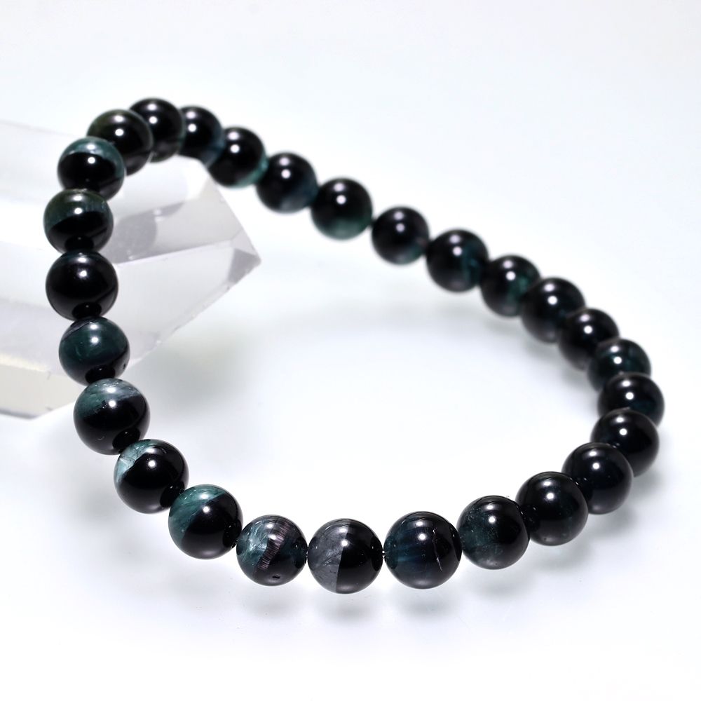 [希少カラー/高品質]ブラックブルーバイカラートルマリンブレスレット/一部キャッツアイ(約6.5mm玉)