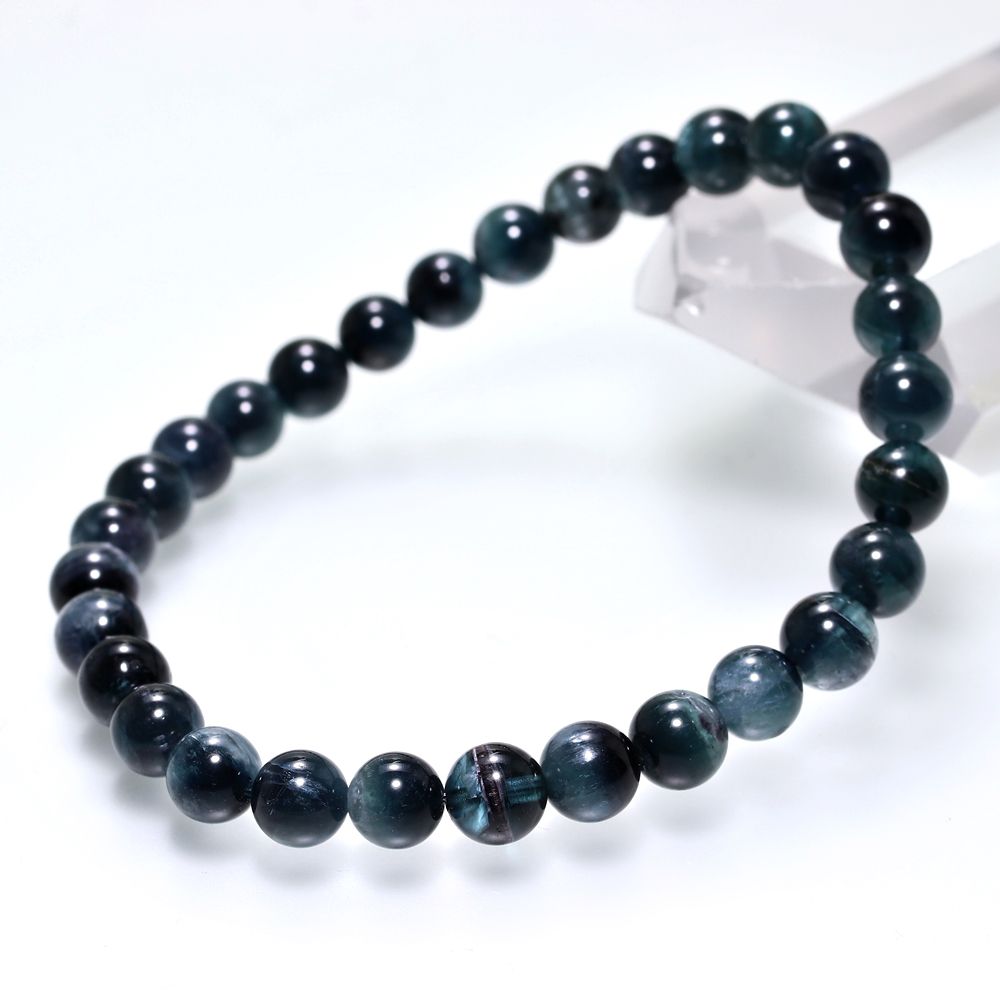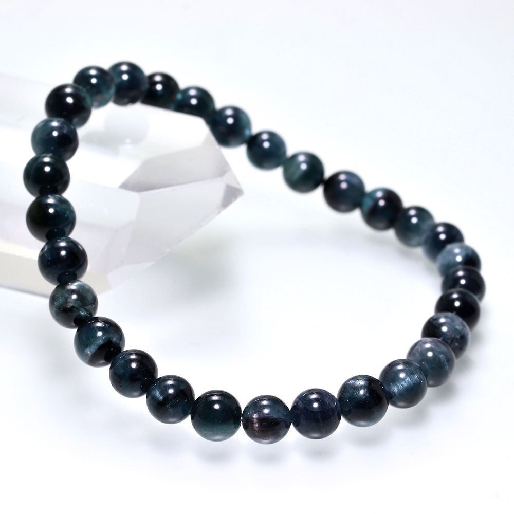 [希少カラー/高品質]ブラックブルートルマリンブレスレット/キャッツアイトルマリン(約6mm玉)