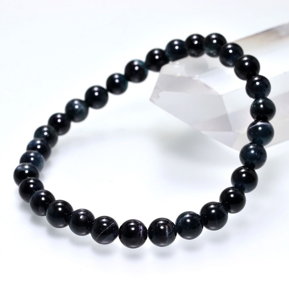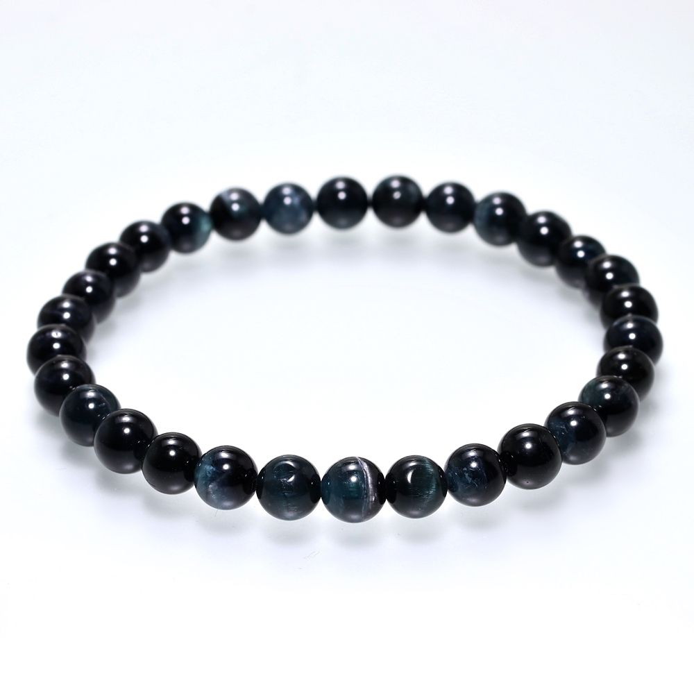 [希少カラー/高品質]ブラックブルートルマリンブレスレット/キャッツアイトルマリン(約6mm玉)
