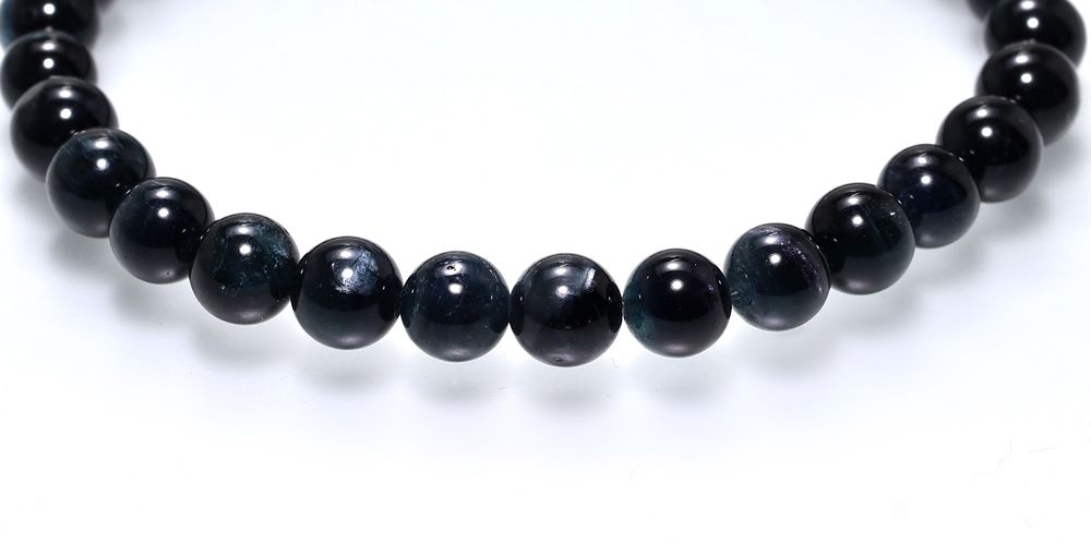 限りなく黒に近い青色が、に、キャッツアイ効果(別名シャトヤンシー)によって本来の色合いを垣間見ることができる、とても興味深いトルマリンブレスレットに仕上がっております!