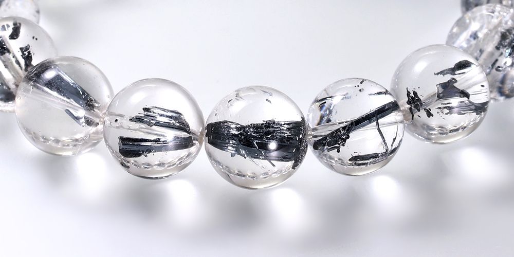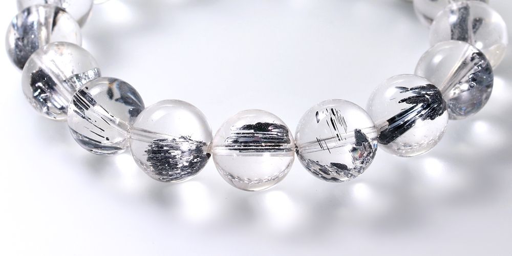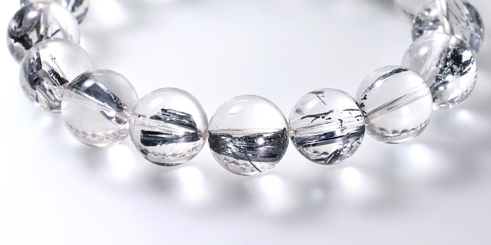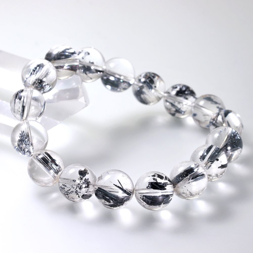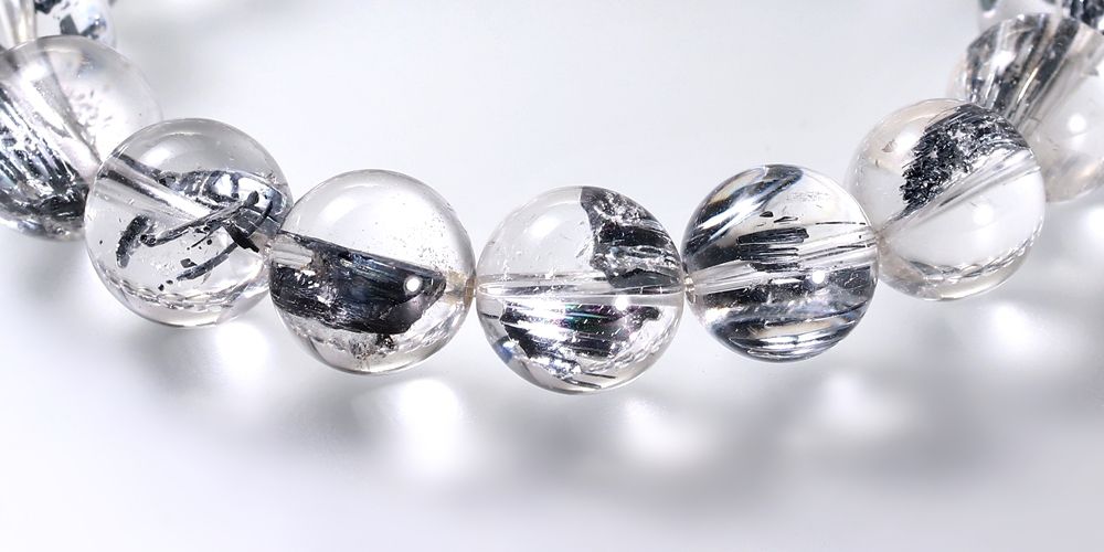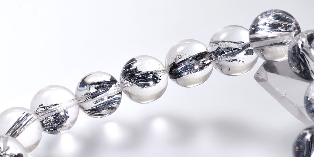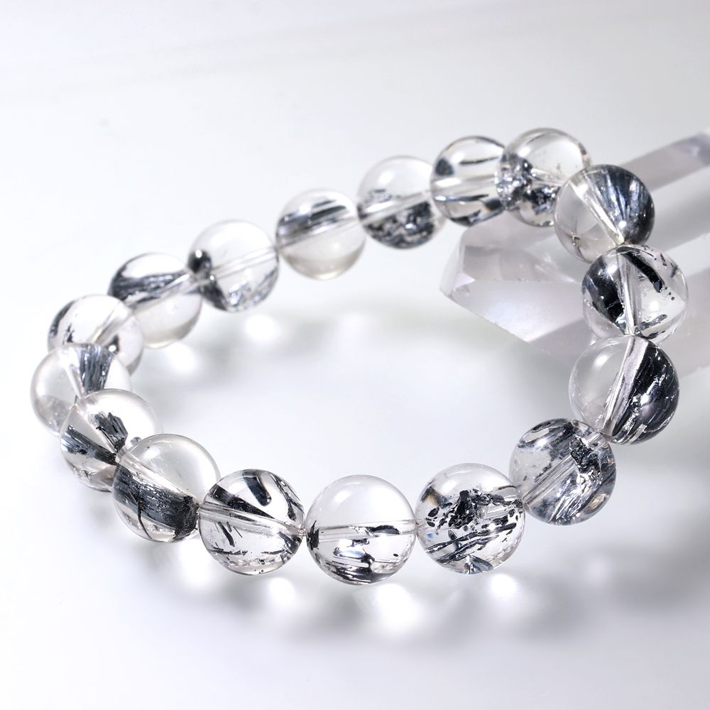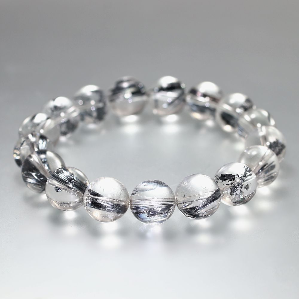 透明度に優れた水晶に、レアメタルのスティブナイト(輝安鉱)が内包された大変希少なスティブナイトインクォーツブレスレットでございます。