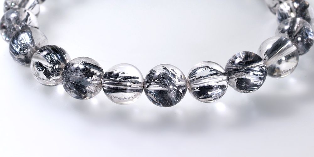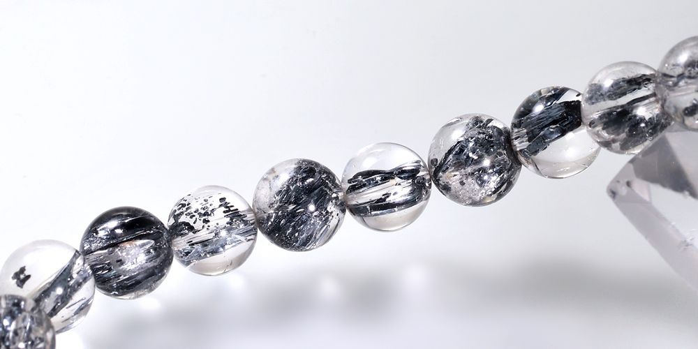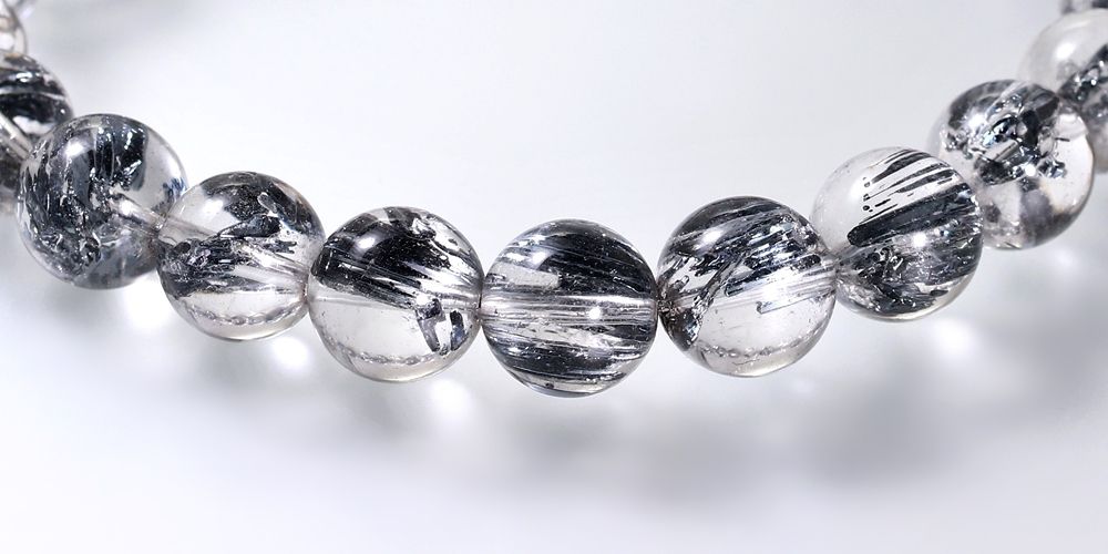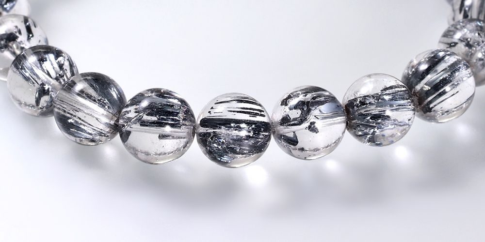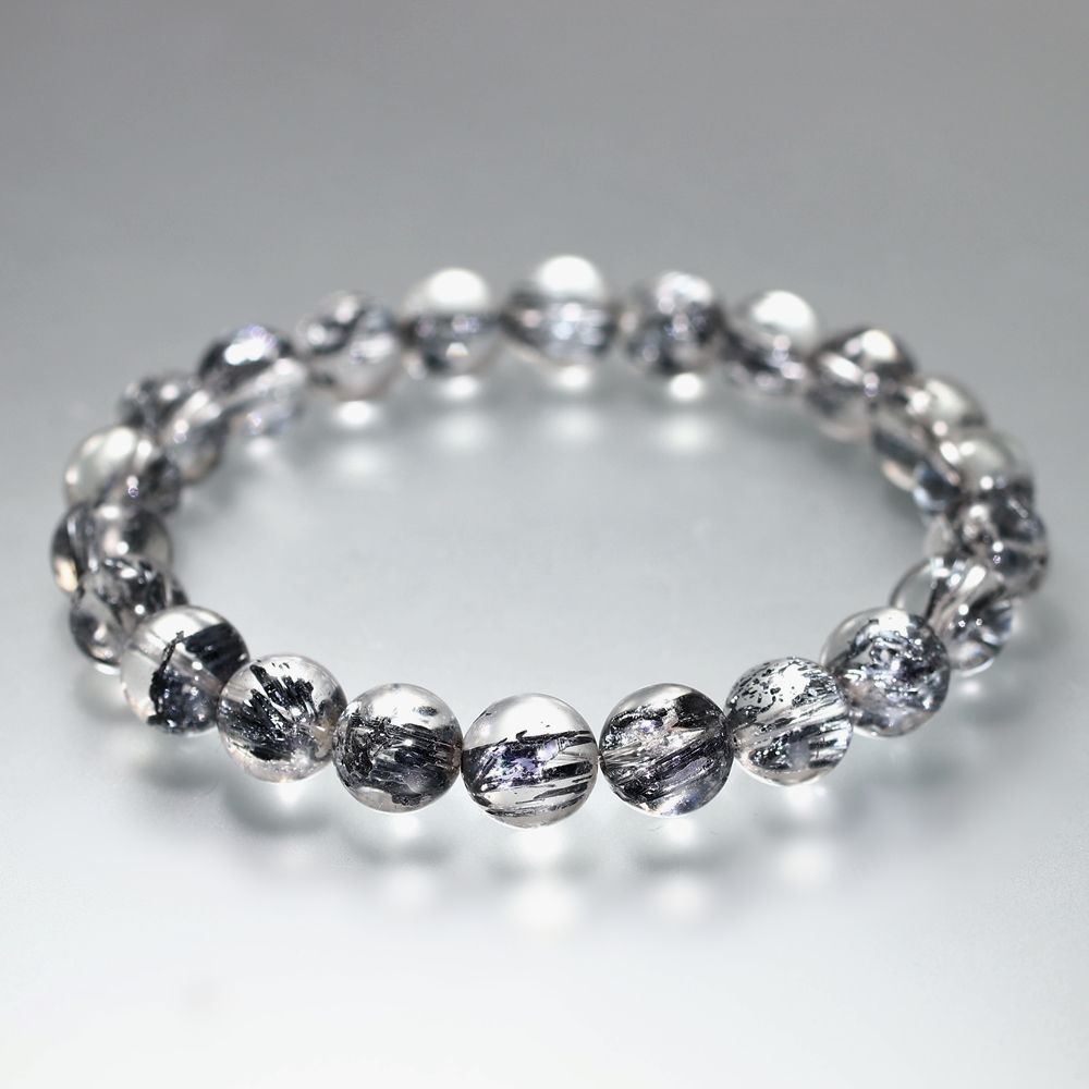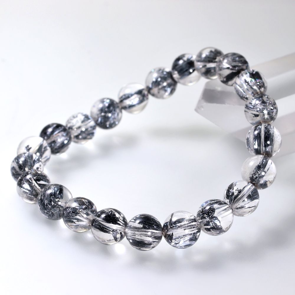 希少鉱物スティブナイトが水晶にインクルージョンされた “レアストーン” スティブナイトインクォーツブレスレットでございます。