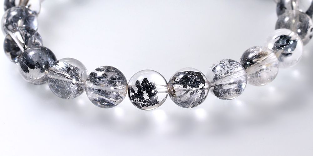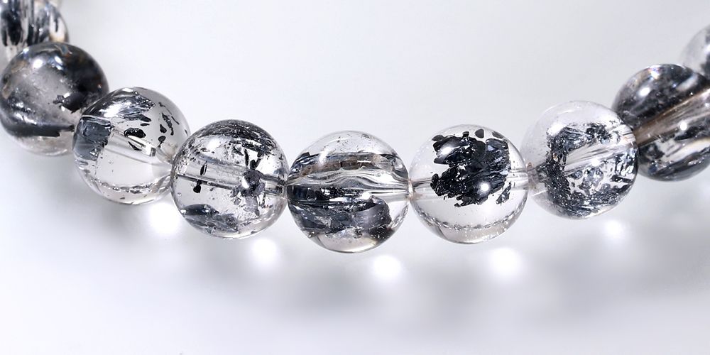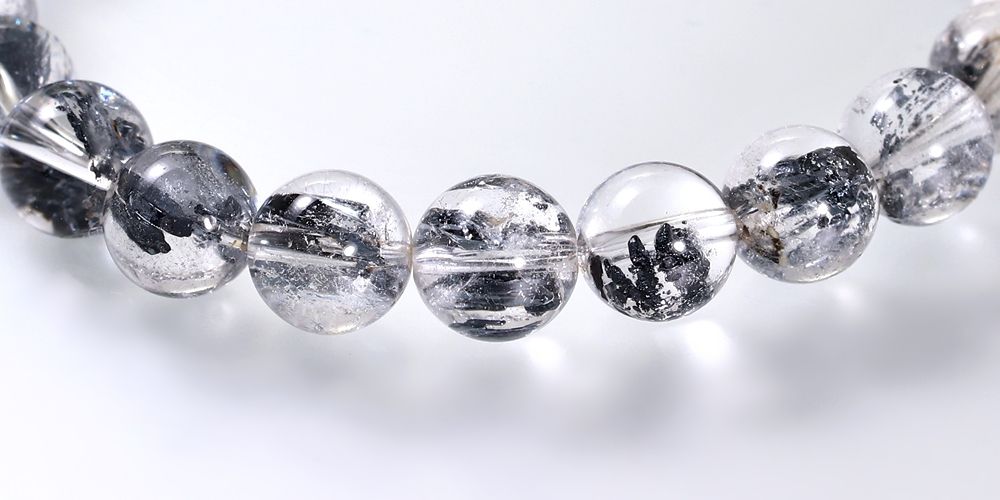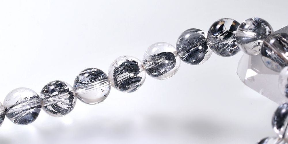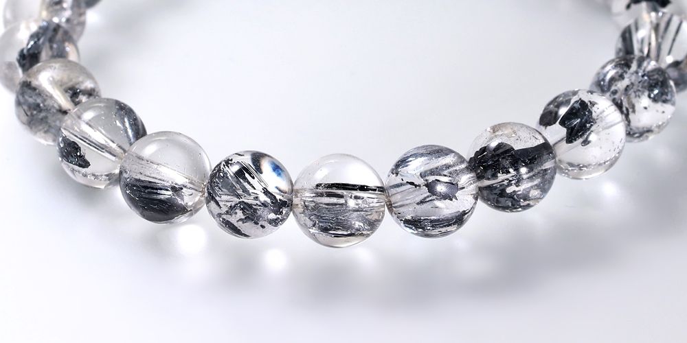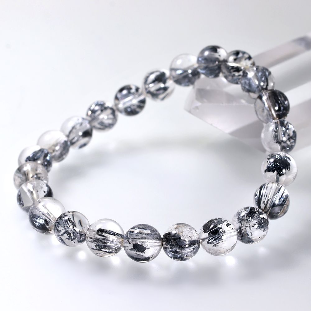 透明度に優れた水晶に、レアメタルのスティブナイト(輝安鉱)が内包された大変希少なスティブナイトインクォーツブレスレットでございます。