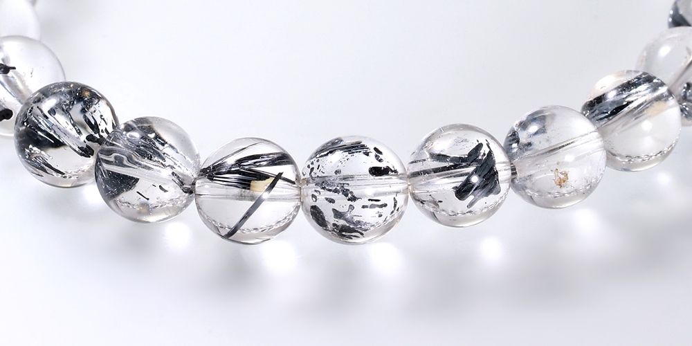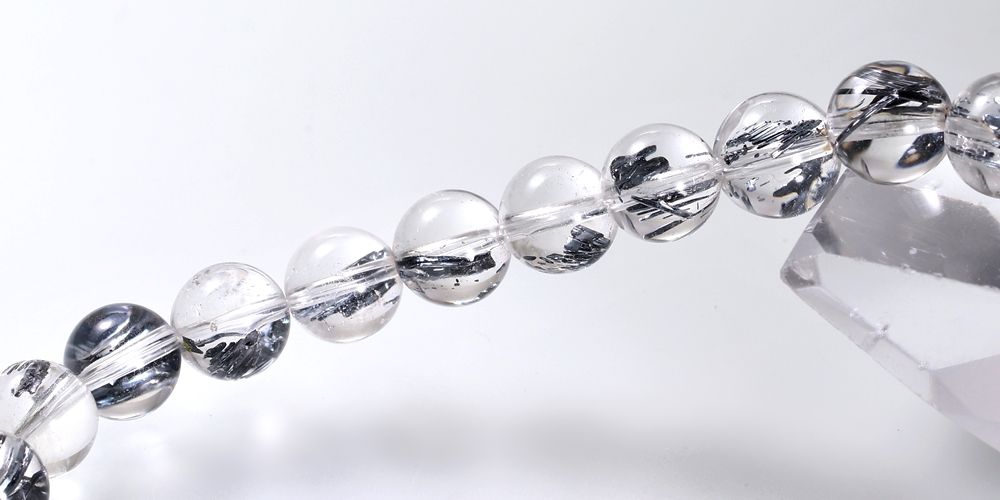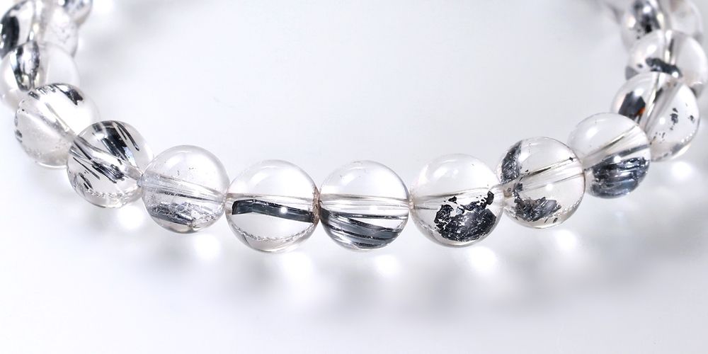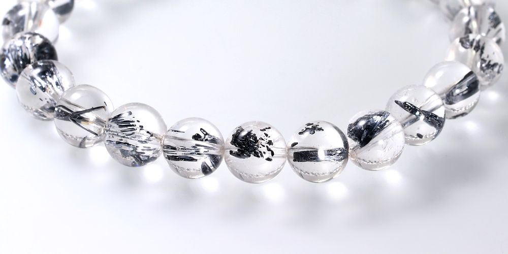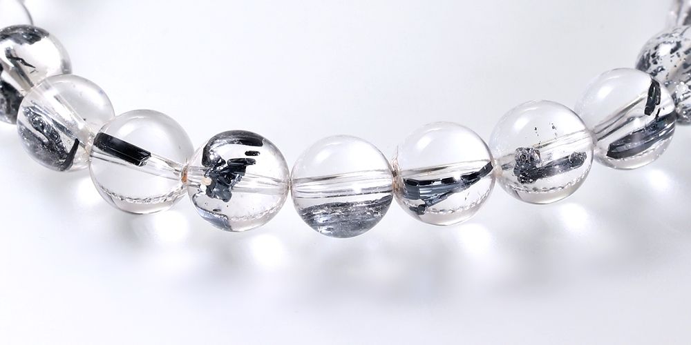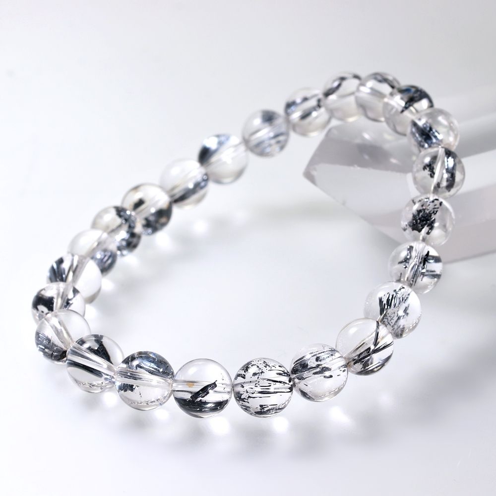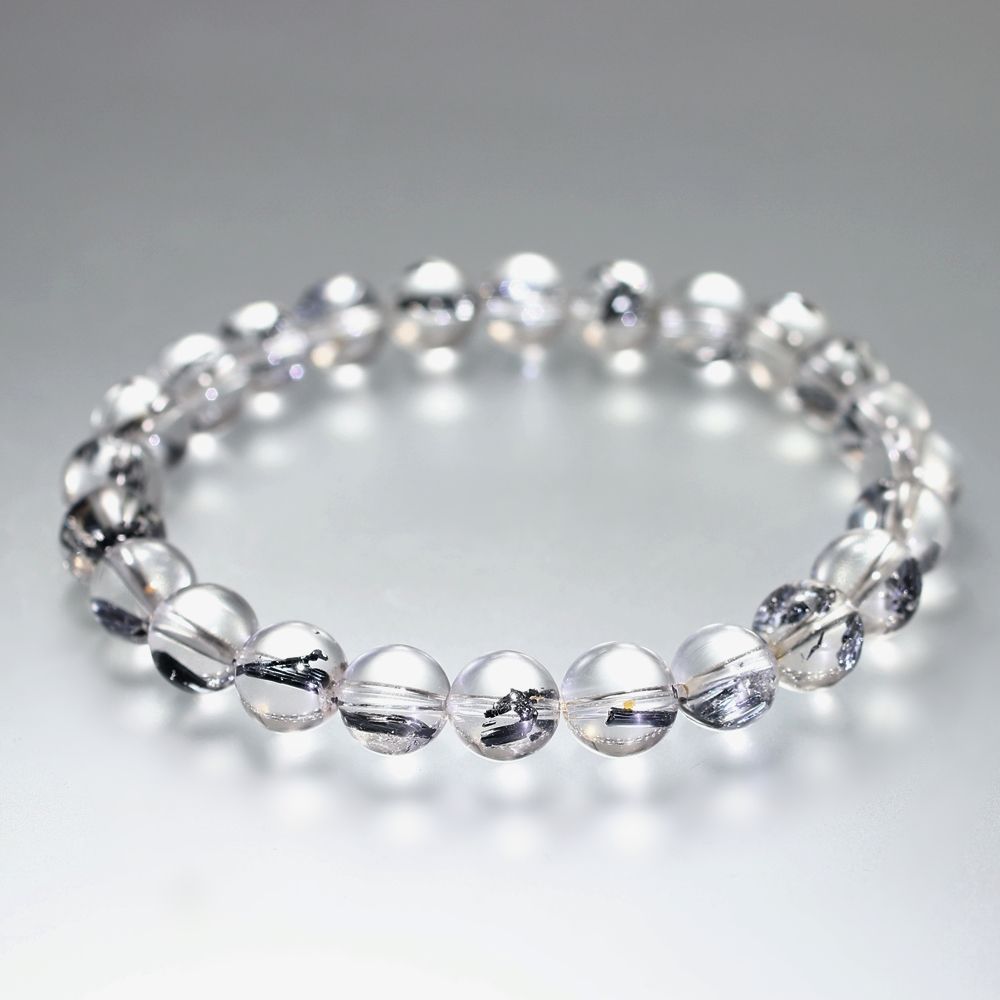 透明度に優れた水晶に、レアメタルのスティブナイト(輝安鉱)が内包された大変希少なスティブナイトインクォーツブレスレットでございます。