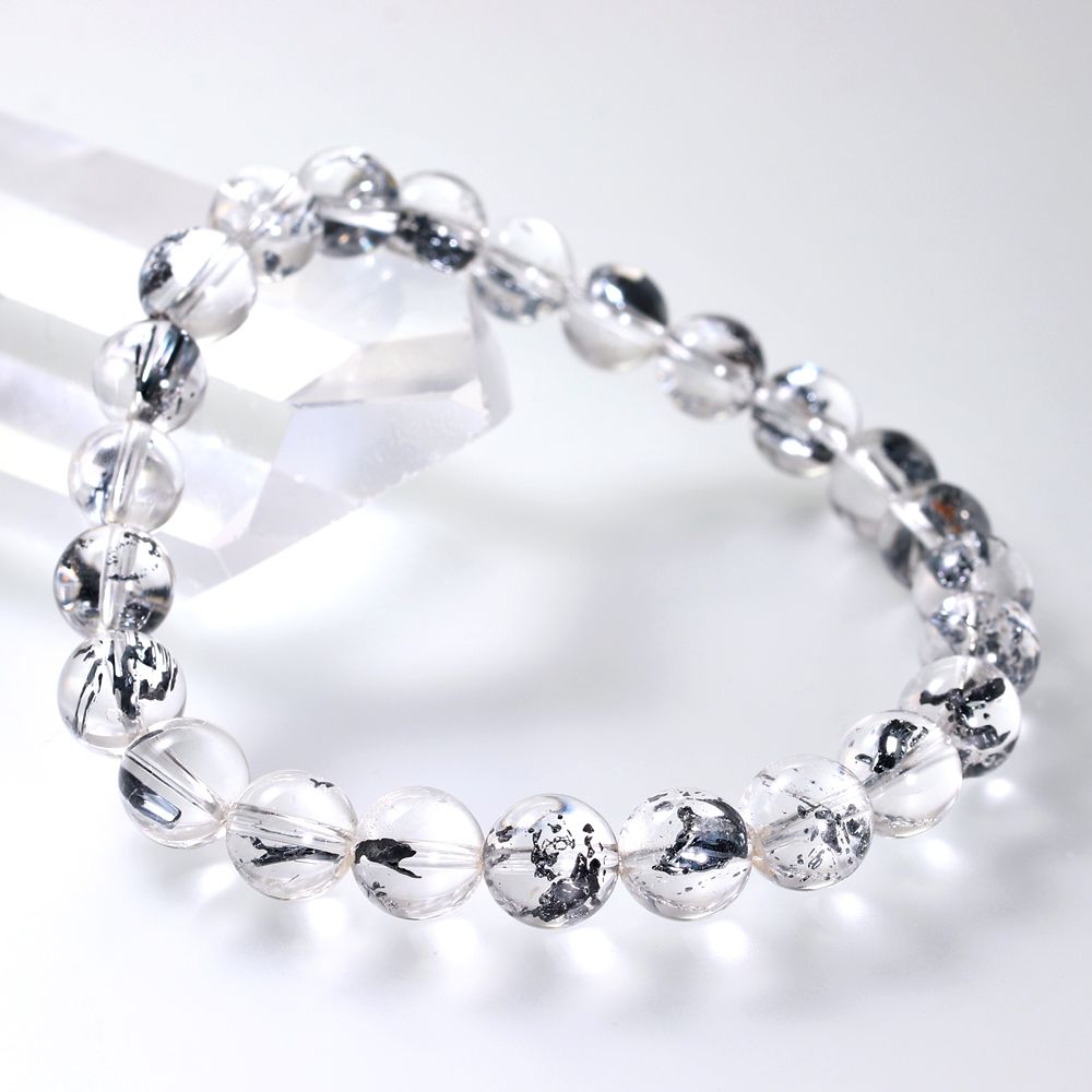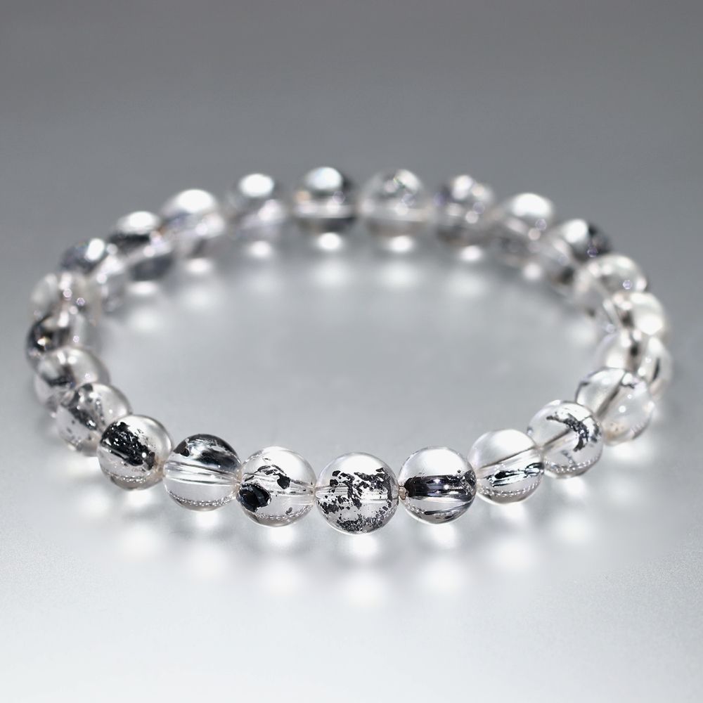 希少鉱物スティブナイトが水晶にインクルージョンされた “レアストーン” スティブナイトインクォーツブレスレットでございます。