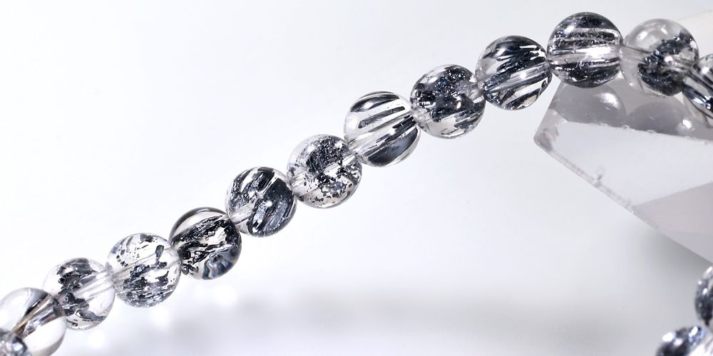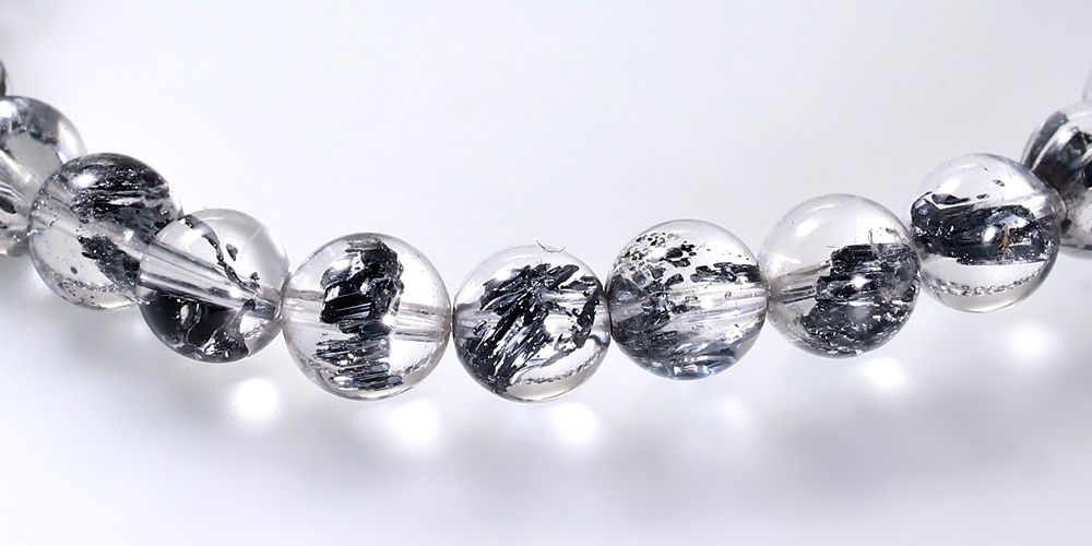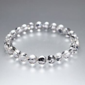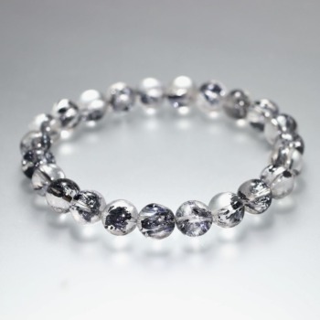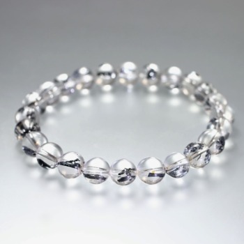 希少鉱物スティブナイトが水晶にインクルージョンされた “レアストーン” スティブナイトインクォーツブレスレットでございます。