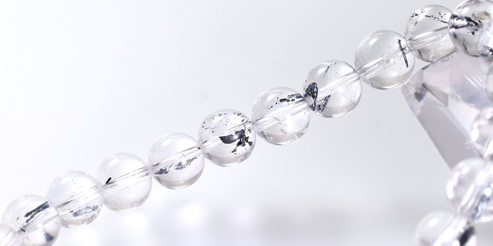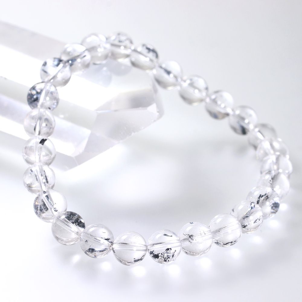 希少鉱物スティブナイトが水晶にインクルージョンされた “レアストーン” スティブナイトインクォーツブレスレットでございます。